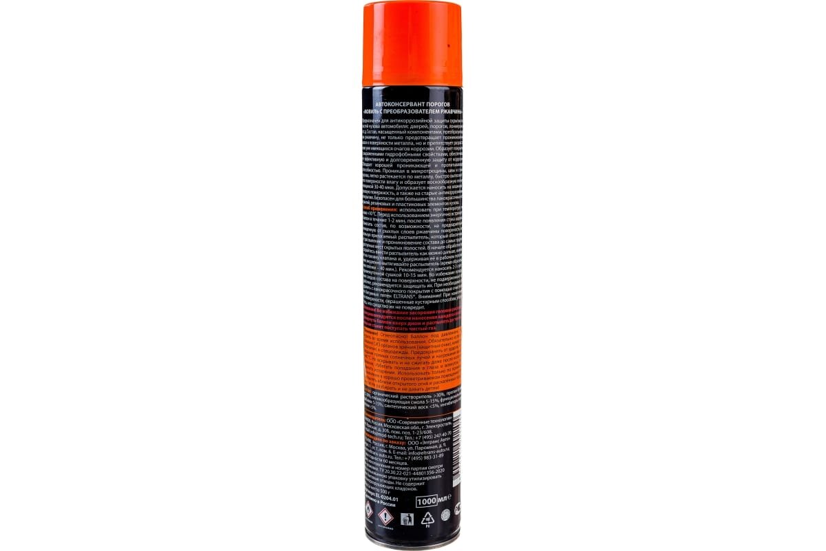 Ниже Вы можете прочитать отзывы на Антикоррозийное покрытие мовиль eltrans el-0204.01 1л с преобразователем ржавчины аэрозоль, ознакомится с подробными характеристиками, посмотреть интересные обзоры и фотографии на Антикоррозийное покрытие мовиль eltrans el-0204.01 1л с преобразователем ржавчины аэрозоль.