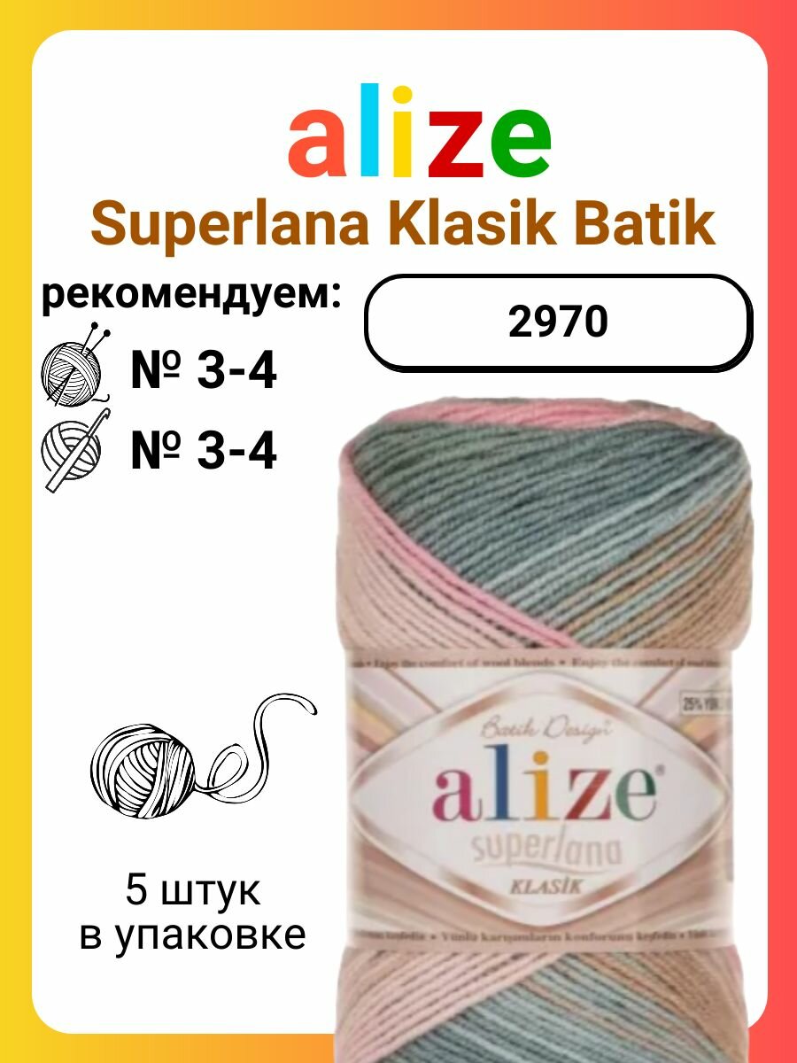 Купить Пряжа Alize Superlana Klasik Batik 2970, 100 г, 280 м, 5 штук