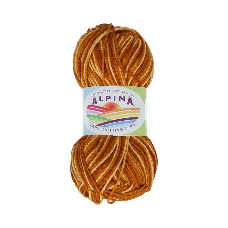 Купить Пряжа ALPINA "KATRIN" 100% мерсеризованный хлопок 50 г 140 м №301 св. желтый-св. коричневый-коричневый