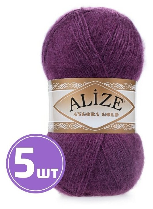 Пряжа для вязания ALIZE 'Angora Gold', 100г, 550м (80% акрил, 20% шерсть), ТУ (312 темно-лиловый), 5 мотков