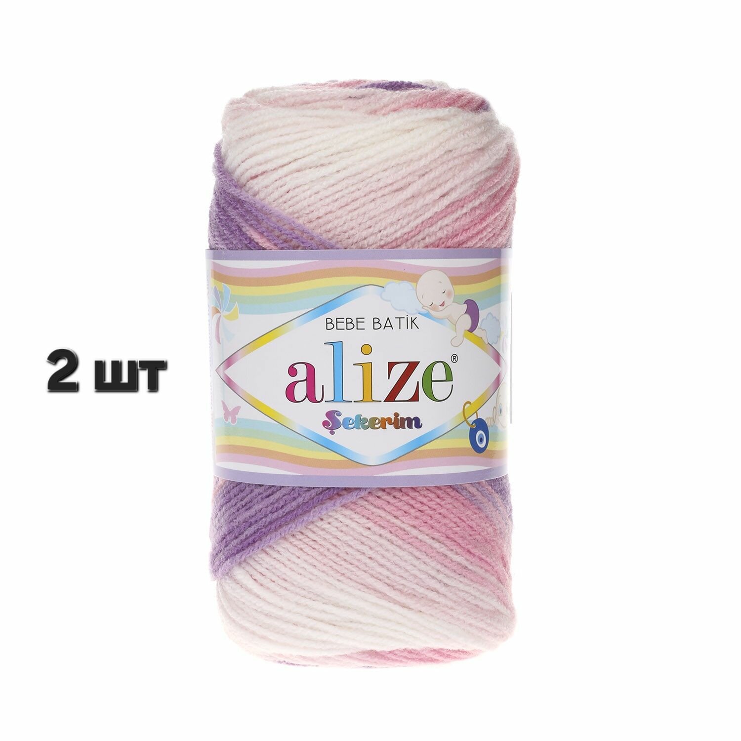 Купить Пряжа Alize Sekerim Bebe Batik Белый-розовый-фиолет (2135) 2 мотка 100 г/320 м (100% акрил) ализе шекерим бебе батик