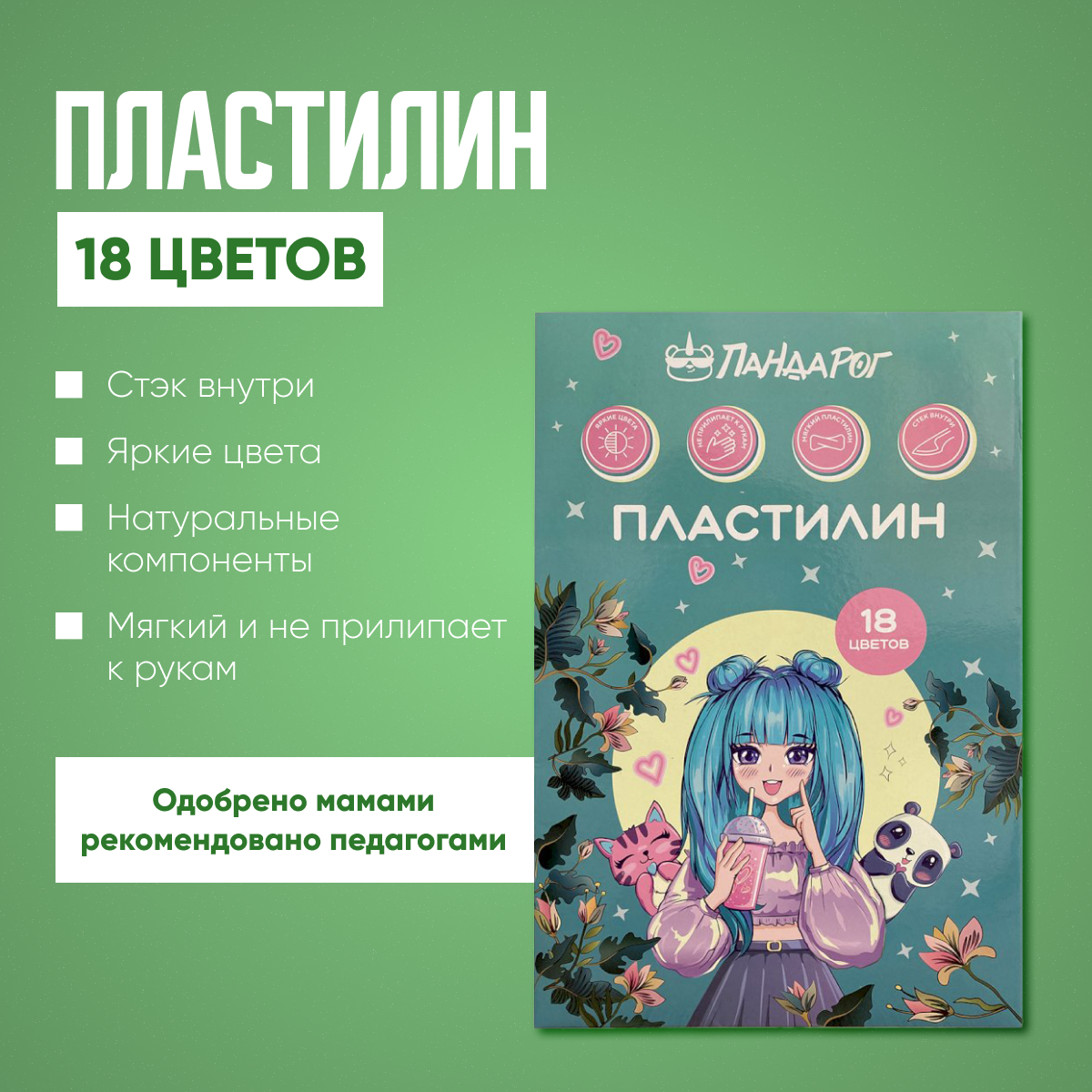 Пластилин "Аниме" Стек внутри, 18 цветов, 360 грамм. ПандаРог. Для школы и творчества. интересное: