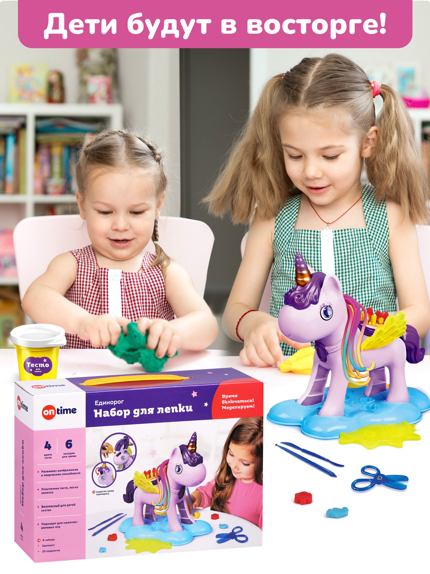 Купить Набор для лепки ON TIME "Единорог", тесто для лепки пластилин 4 цвета и набор аксессуаров