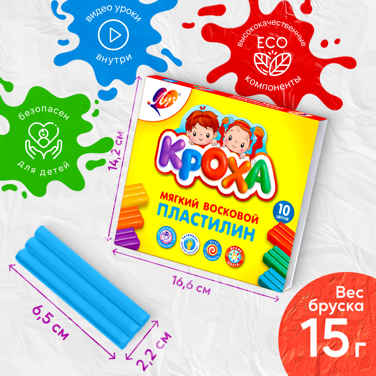 Восковой пластилин для малышей Луч "Кроха" 10 цветов 150 грамм интересное: