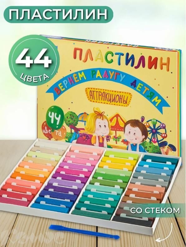 Купить Пластилин классический со стеком, Аттракционы, набор 44 цвета, 880 г