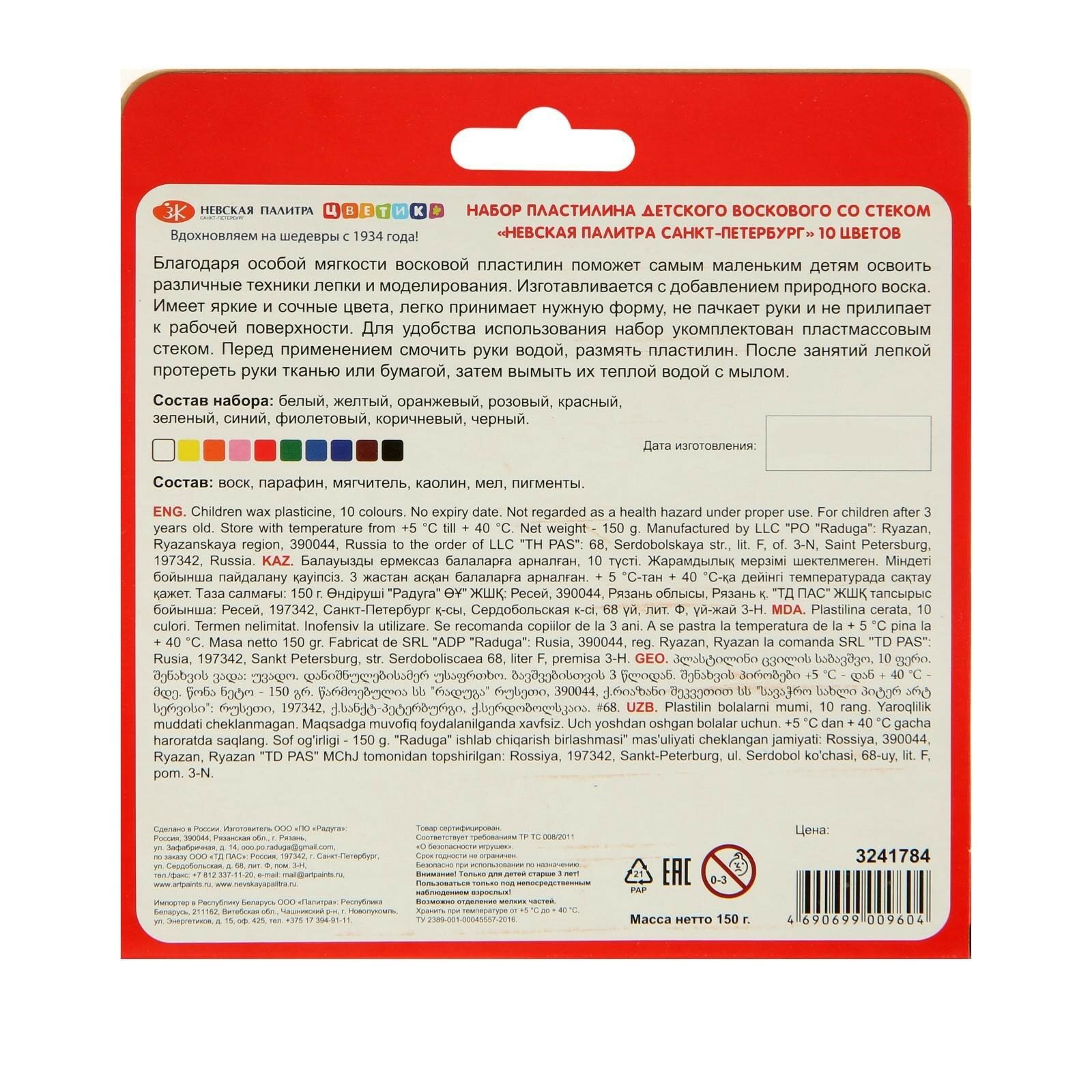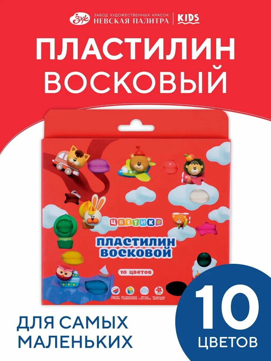 Пластилин Невская палитра Цветик, 10 цветов, 150 г, восковой, со стеком 3241784 интересное: