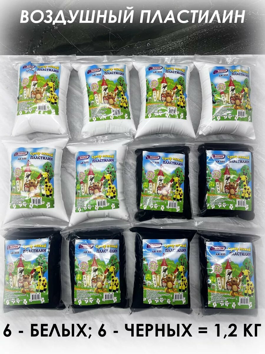 Купить Легкий воздушный пластилин набор 2 цвета 1200 грамм белый и черный