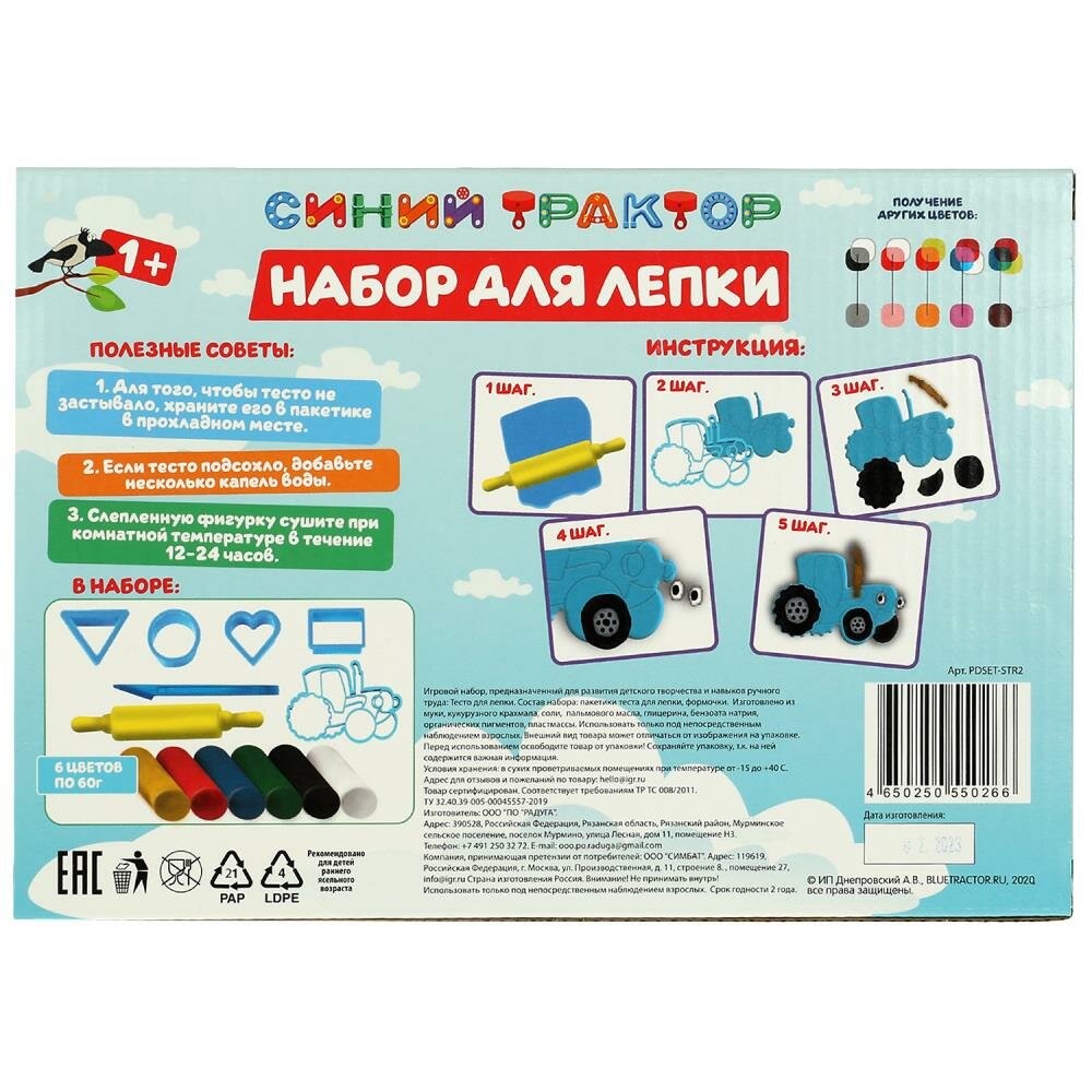 Купить Набор для творчества Тесто для лепки с формочками синий трактор PDSET-STR2