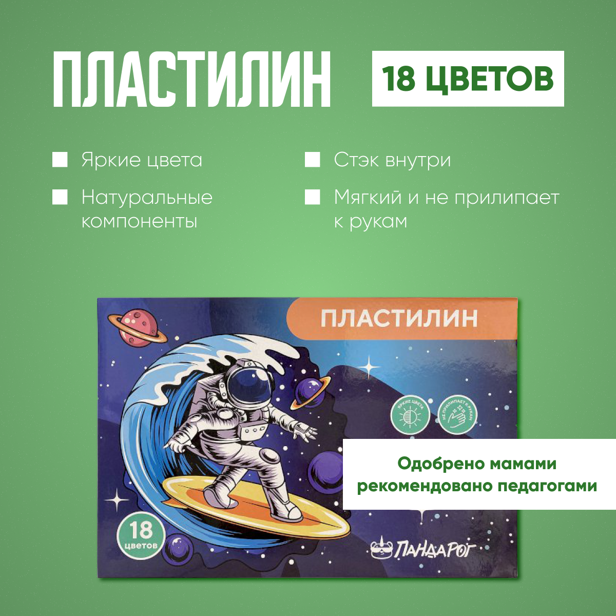 Пластилин "Космический Серфер" Стек внутри, 18 цветов, 360 грамм. ПандаРог. Для школы и творчества. интересное: