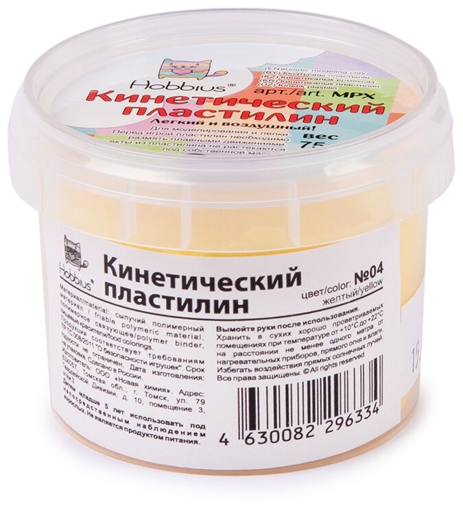 Кинетический пластилин "Hobbius" MPX 75 г (в баночке) №04 желтый интересное: