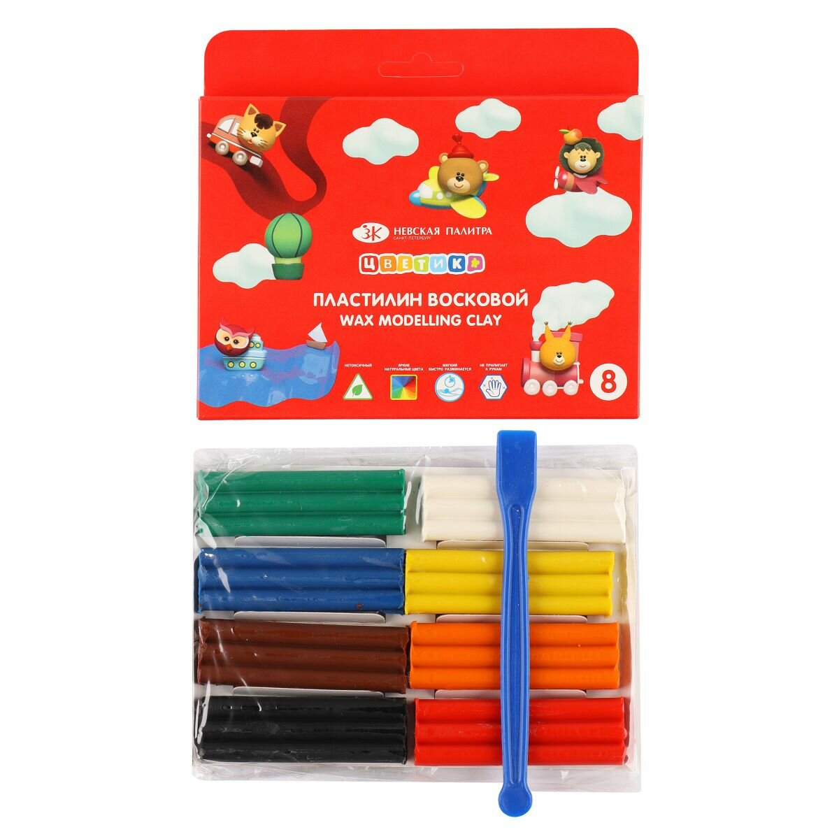 Пластилин Невская палитра Цветик, 8 цветов, 120 г, восковой, со стеком 3241696 интересное: