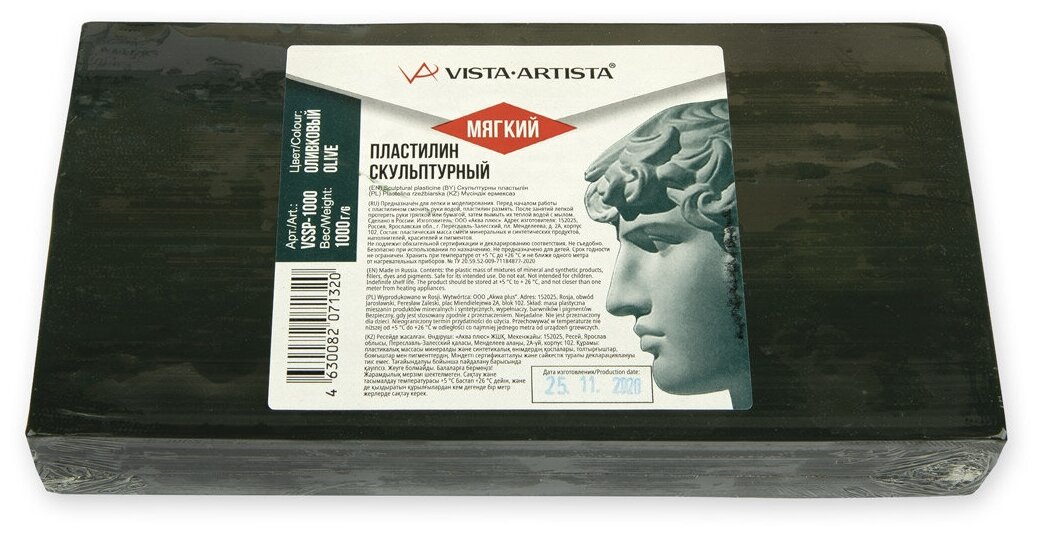 Пластилин скульптурный 1 кг "VISTA-ARTISTA" VSSP-1000 Studio скульпталин №3 оливковый мягкий интересное: