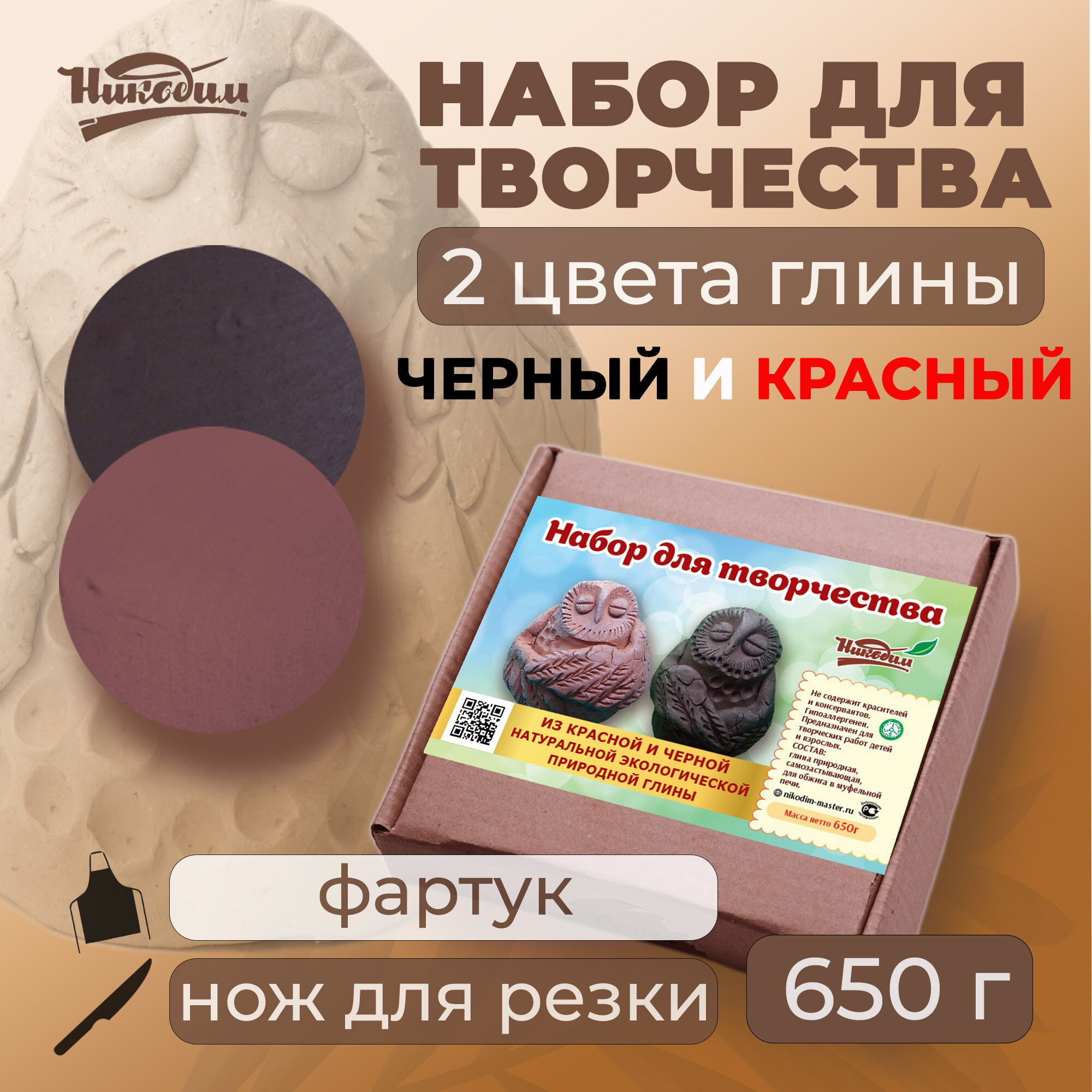Набор натуральной глины для лепки "Черный/Красный" (Брауни Black/Брауни White) интересное: