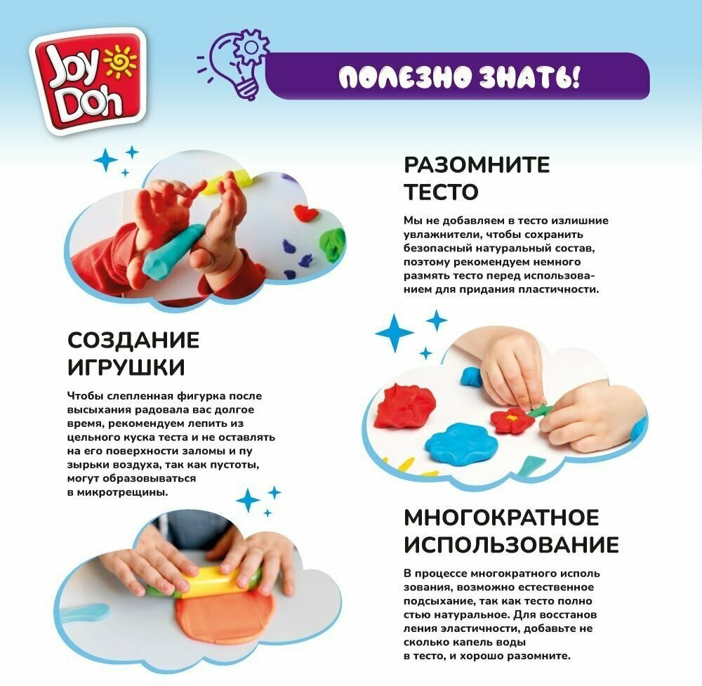 Набор для творчества Масса для лепки Joy Doh, набор PUZZLE SET - пазлы, 10 карточек с трафаретам, 13 форм и аксессуаров, 4 баночки с тестом, (4 x 50 г.) PUZZ-200 pot