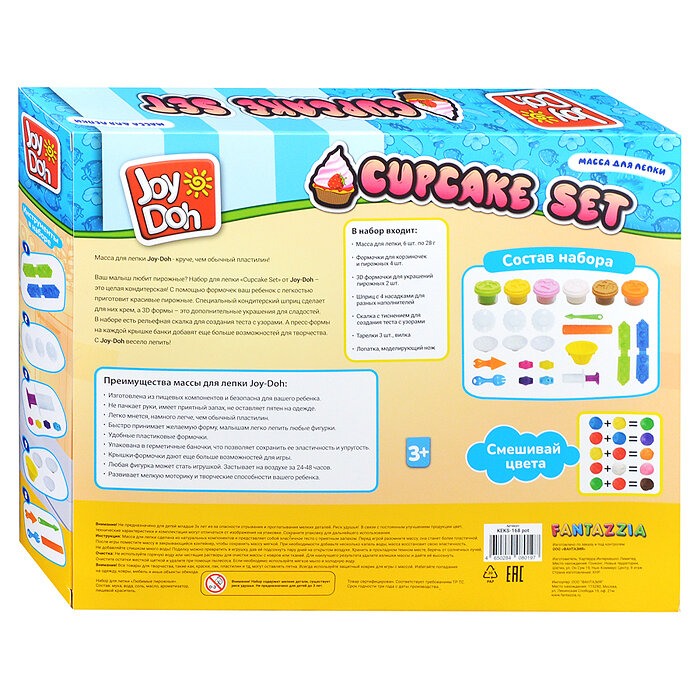 Купить Масса для лепки Joy Doh, набор CUPCAKE SET - любимые пирожные, 3d формы, 18 аксессуаров, 6 баночек KEKS-168 pot