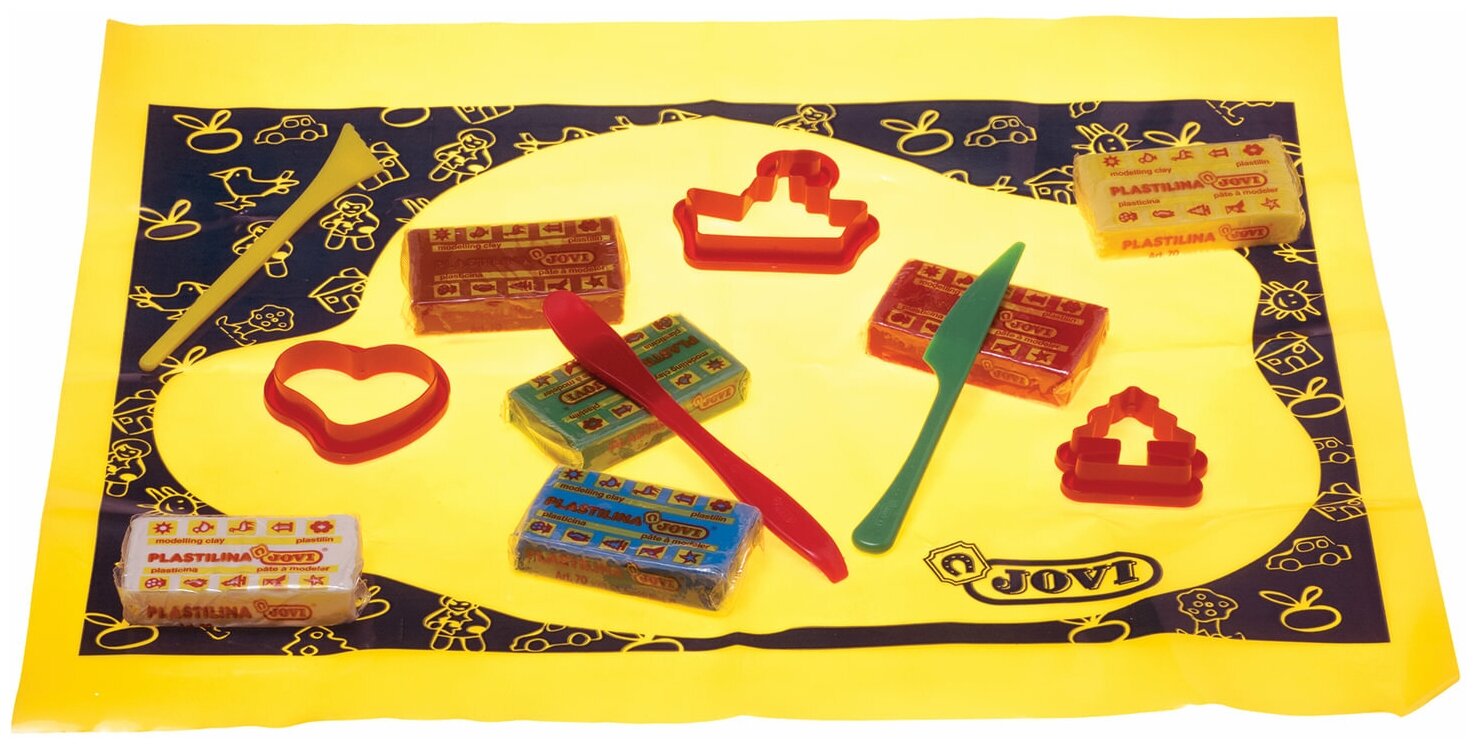 Пластилин на растительной основе 6 цветов Jovi, 300г, формочки, стеки, клеенка, в ведре (14), 4 уп.