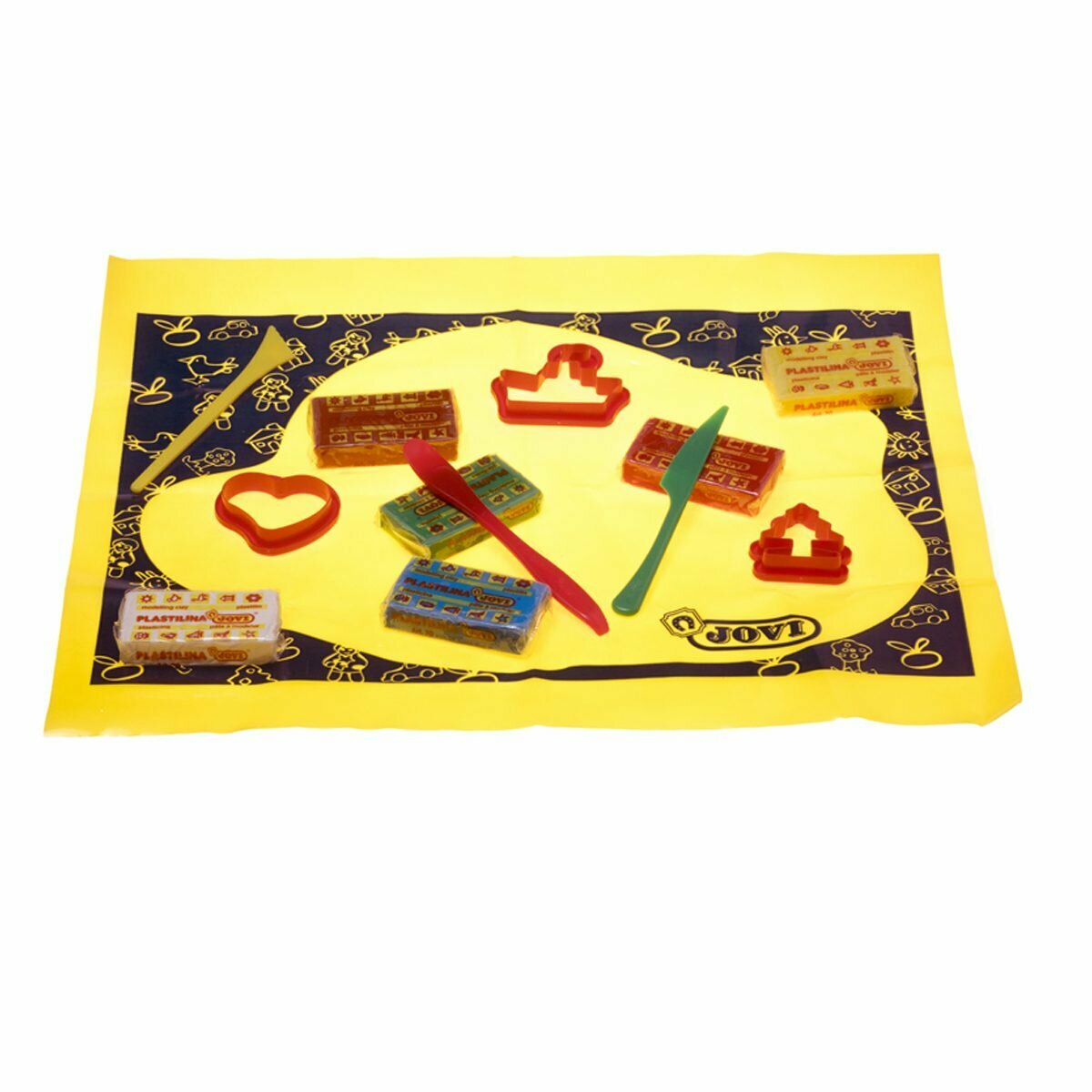 Купить Пластилин на растительной основе 6 цветов Jovi, 300г, формочки, стеки, клеенка, в ведре (14), 4 уп.