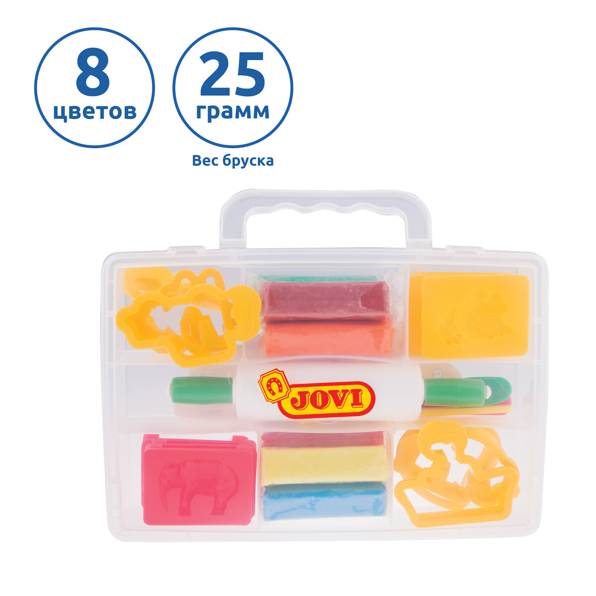 Купить Пластилин растительный JOVI, 8 цветов, 25г, растительный, формочки, стеки, скалка, в чемодане