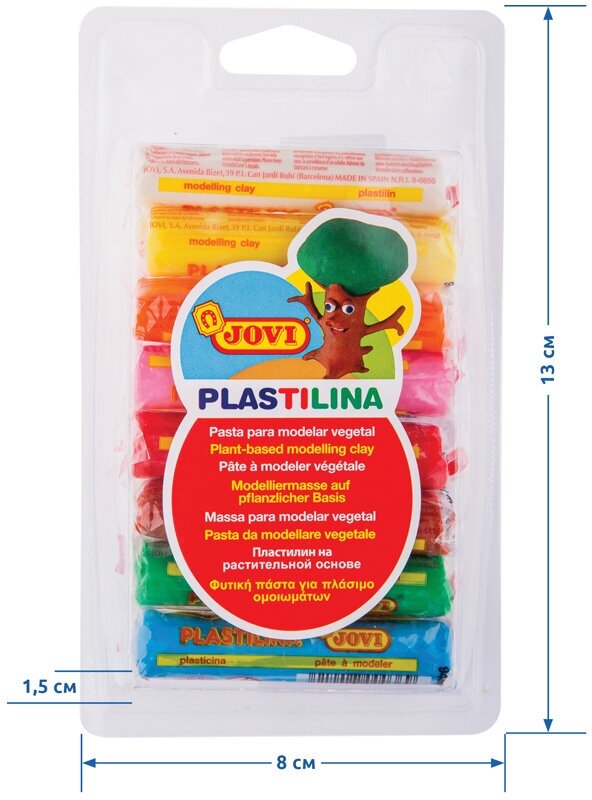 Пластилин растительный JOVI, 8 цветов, 15г, блистер интересное: