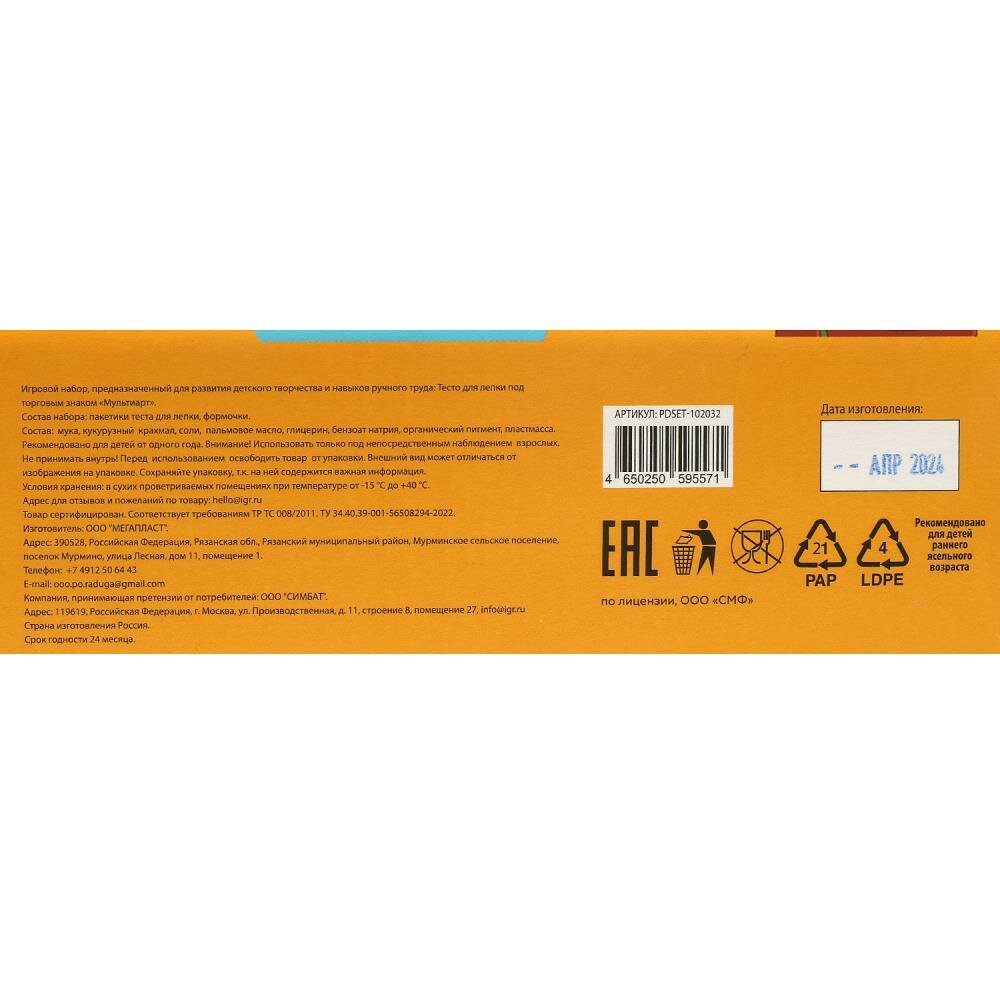СохранитьНабор с тестом для лепки и формочками "Мороженое для Чебурашки" MultiArt PDSET-102032 интересное: