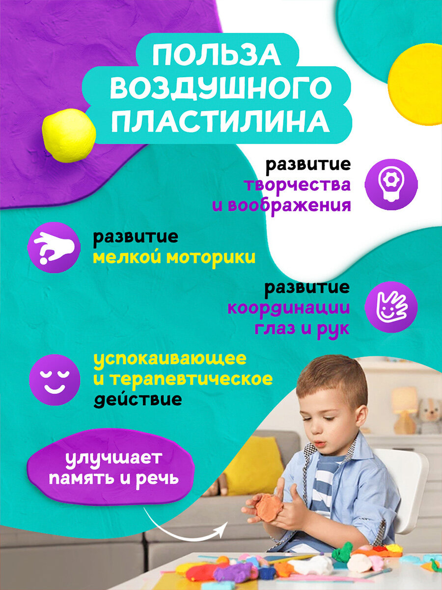 Воздушный пластилин детский для лепки легкий мягкий скульптурный со стеками набор 60 шт LIZUNTOYS