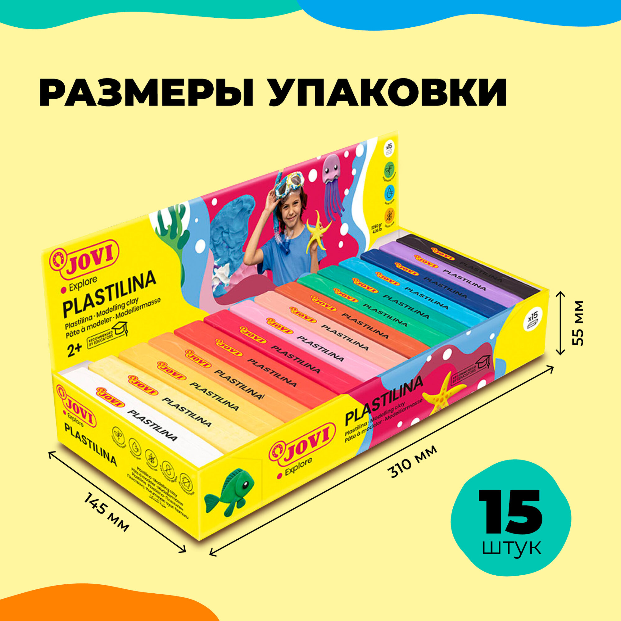 Пластилин JOVI, ассорти, 150г, дисплей, 15 штук в упаковке интересное: