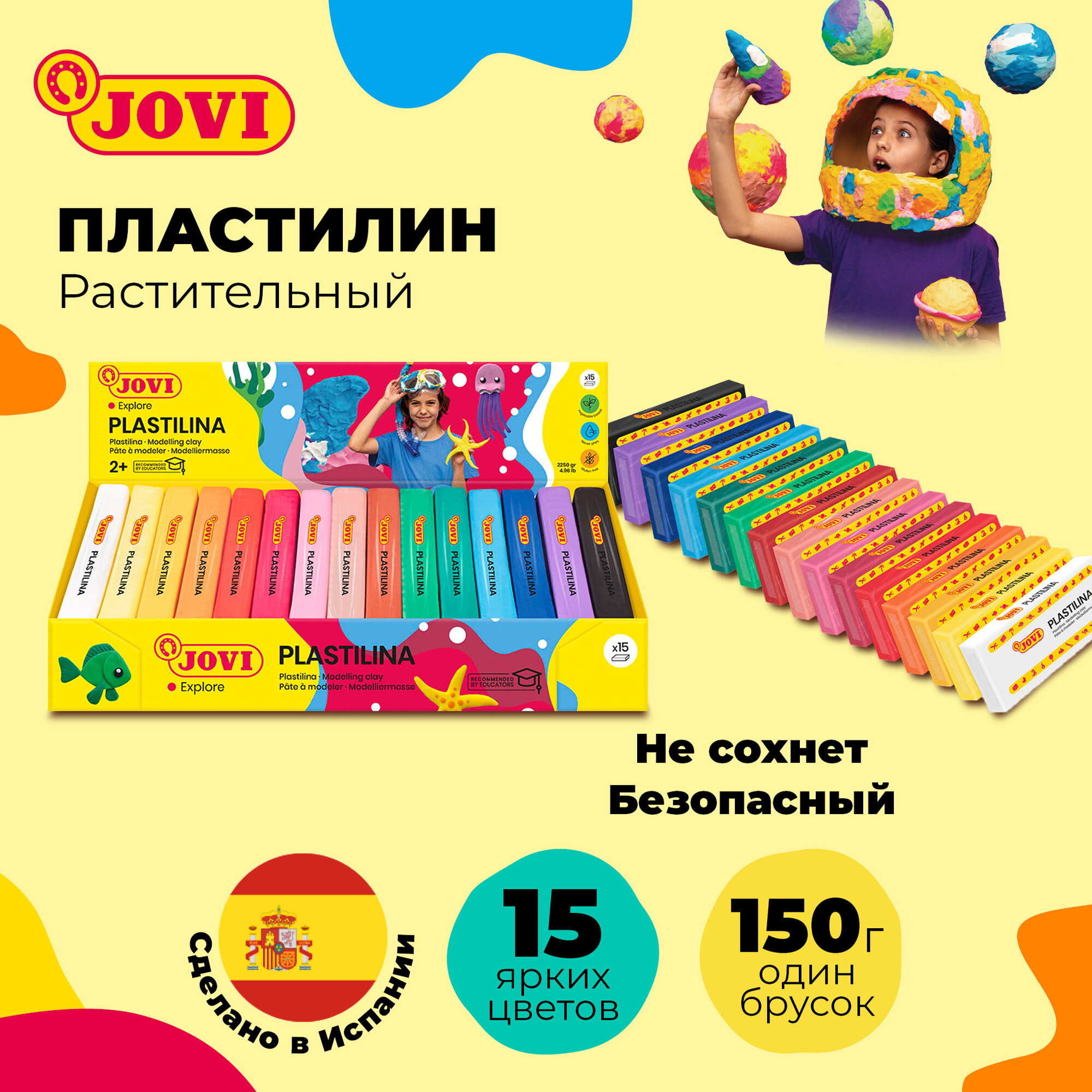 Ниже Вы можете прочитать отзывы на Пластилин JOVI, ассорти, 150г, дисплей, 15 штук в упаковке, ознакомится с подробными характеристиками, посмотреть интересные обзоры и фотографии на Пластилин JOVI, ассорти, 150г, дисплей, 15 штук в упаковке.