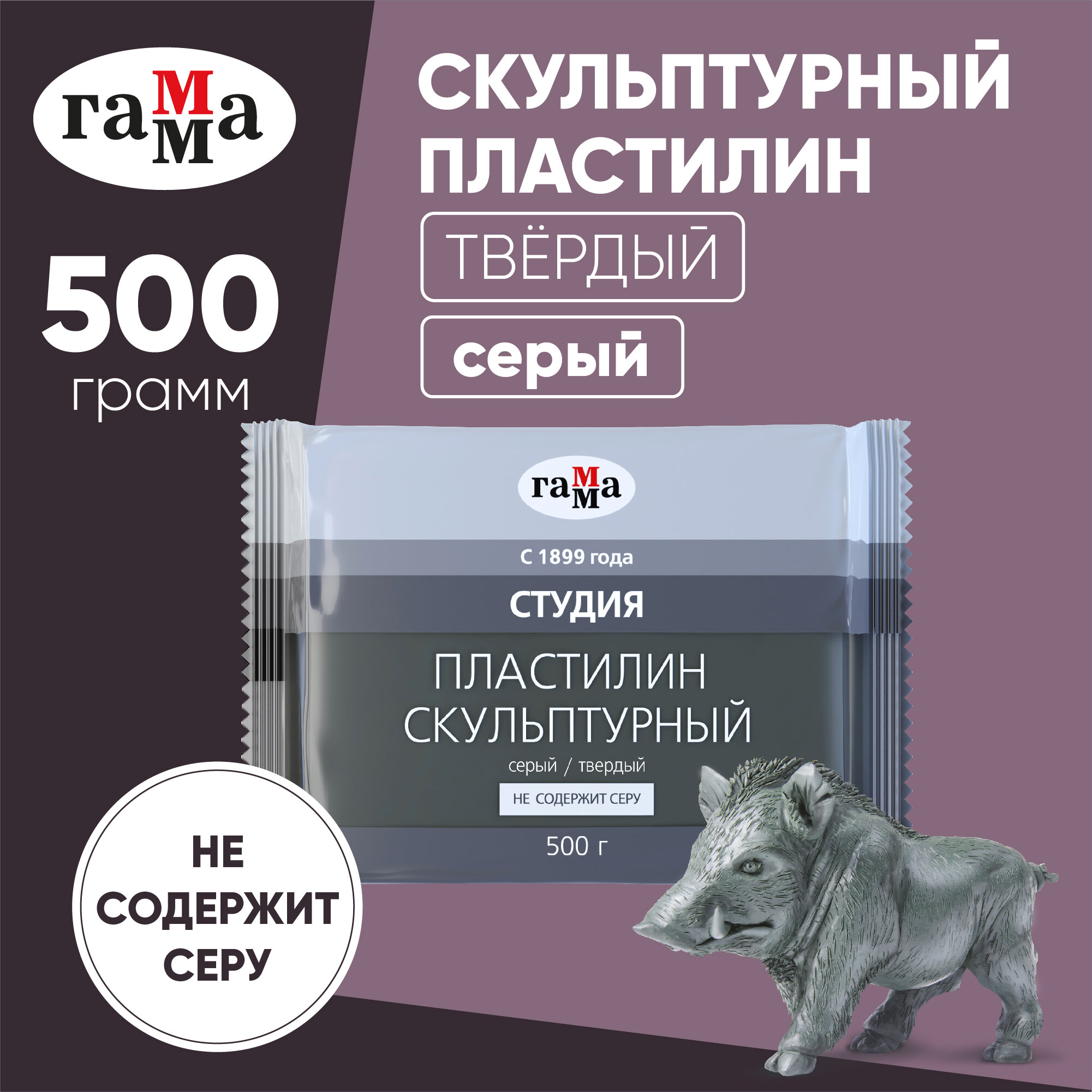Пластилин скульптурный Гамма "Студия", серый, твердый, 500 г интересное: