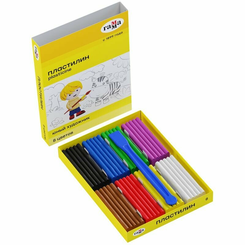 Купить Пластилин Гамма "Юный художник" 8 цветов, 112 г, со стеком, картон