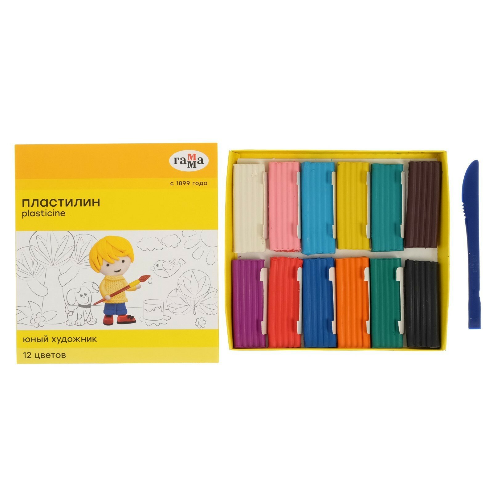 Купить Пластилин 12 цветов 168 г, "Юный художник", со стеком