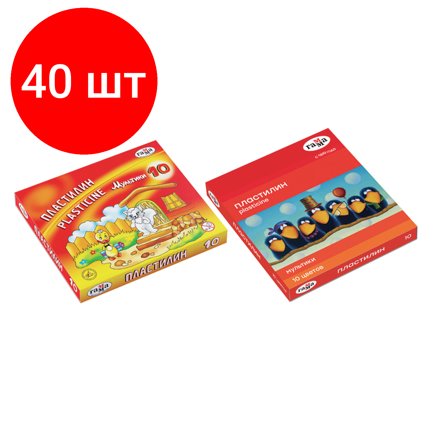Купить Пластилин классический гамма "Мультики", 10 цветов, 200 г, со стеком, картонная упаковка, 280017/281017, 2 набора