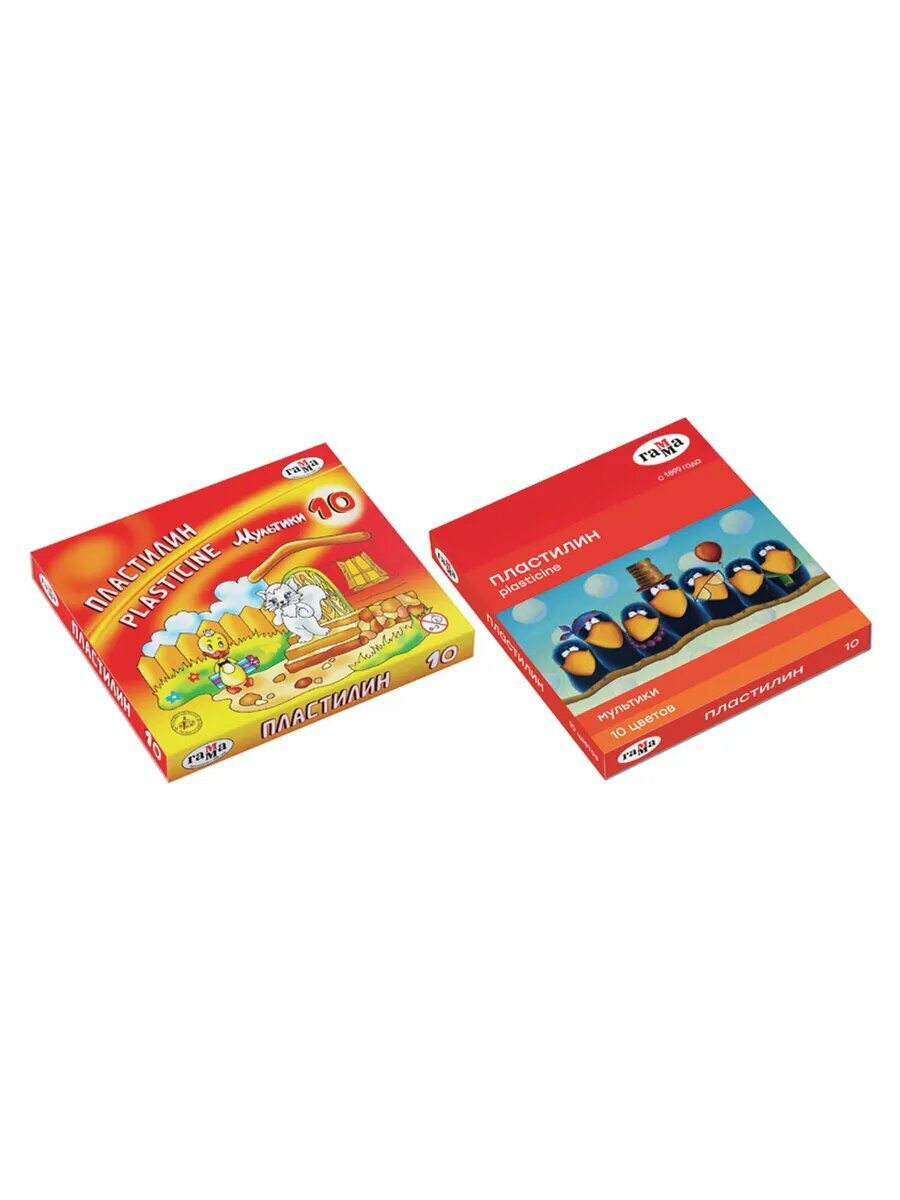 Пластилин классический гамма "Мультики", 10 цветов, 200 г, со стеком, картонная упаковка, 280017/281017, 2 набора