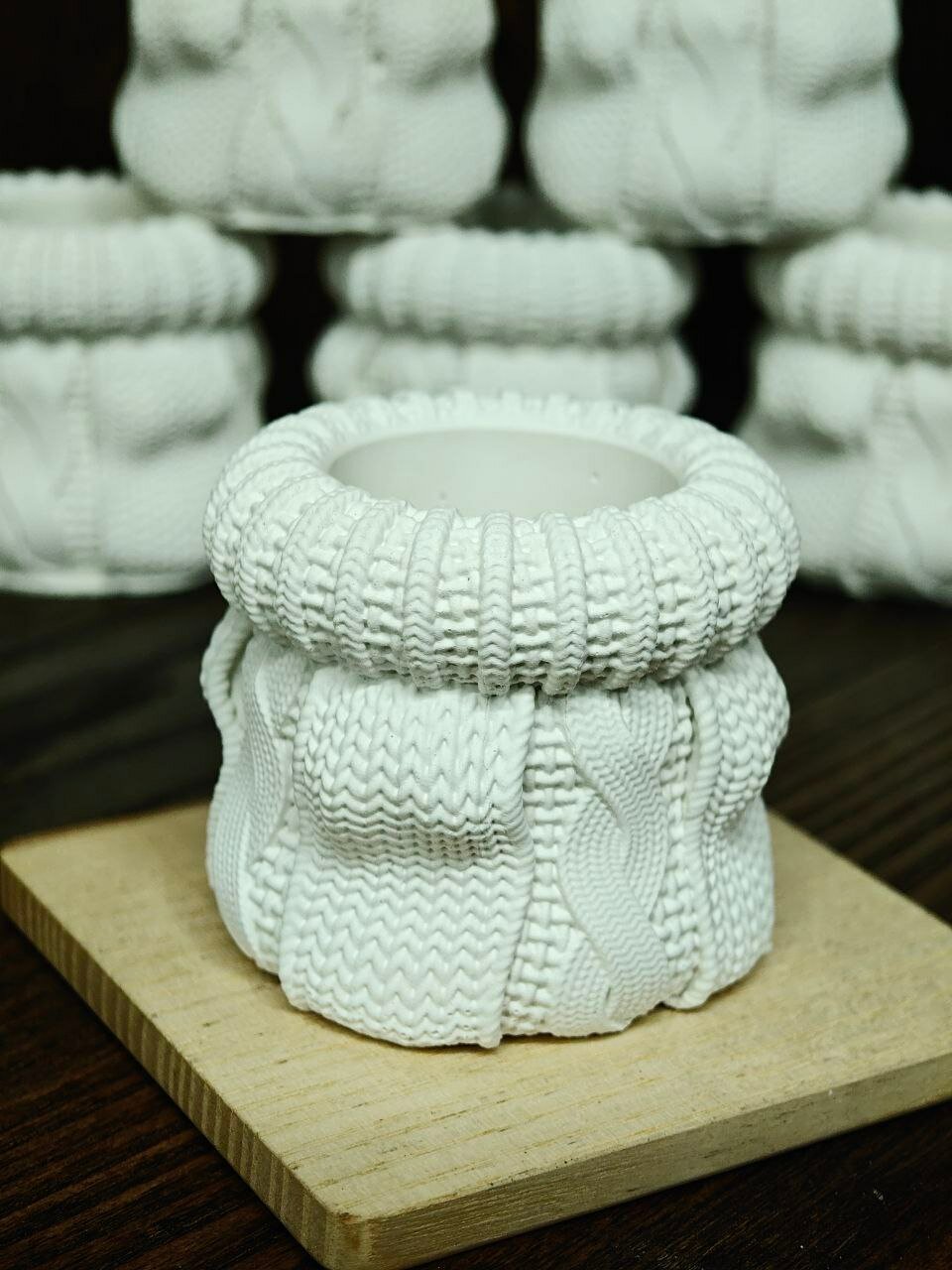 Кашпо, ваза, гипсовый контейнер для свечи "вязаный мешочек". Набор 3 шт. интересное:
