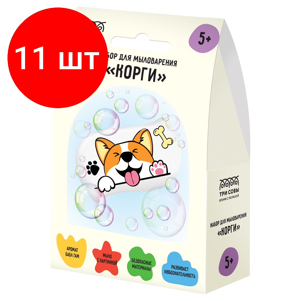 Купить Комплект 11 шт, Набор для мыловарения ТРИ совы "Корги", 1 мыло с картинкой, картонная коробка