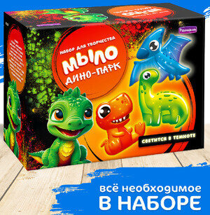 СохранитьНабор для творчества (АромаФабрика) МылоСвоимиРуками_Набор Дино-парк [светится в темноте гипоаллергенный ароматизатор, пищевые красители, формочки] (С0122) интересное: