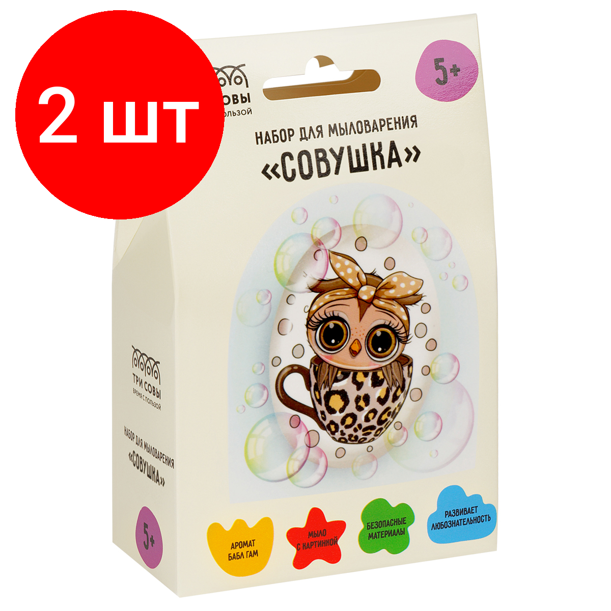 Комплект 2 шт, Набор для мыловарения ТРИ совы "Совушка", 1 мыло с картинкой, картонная коробка интересное: