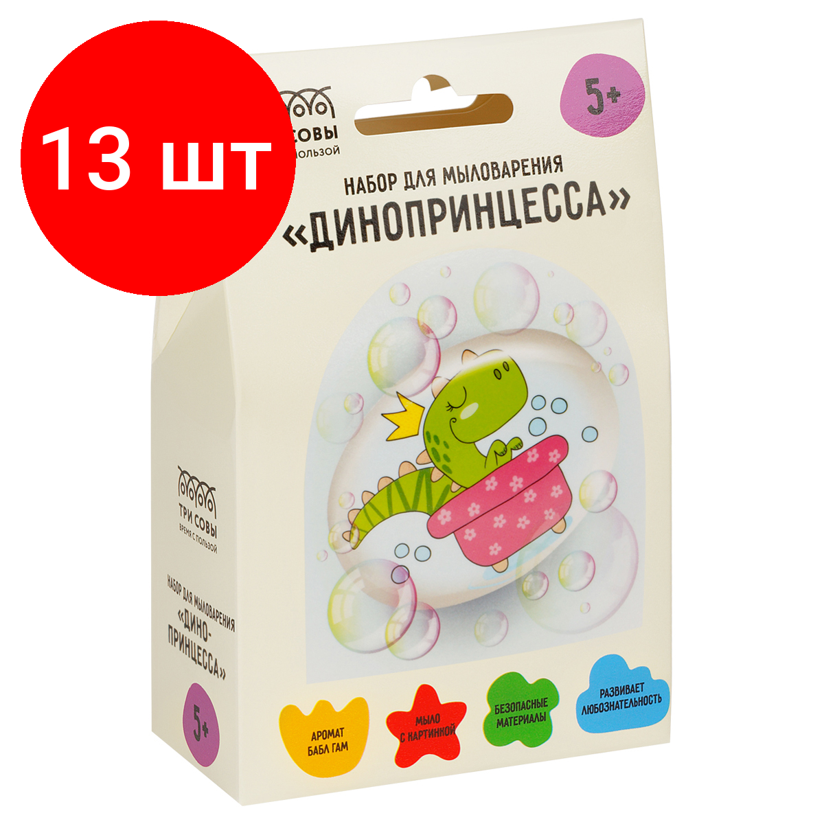 Комплект 13 шт, Набор для мыловарения ТРИ совы "Динопринцесса, 1 мыло с картинкой, картонная коробка интересное: