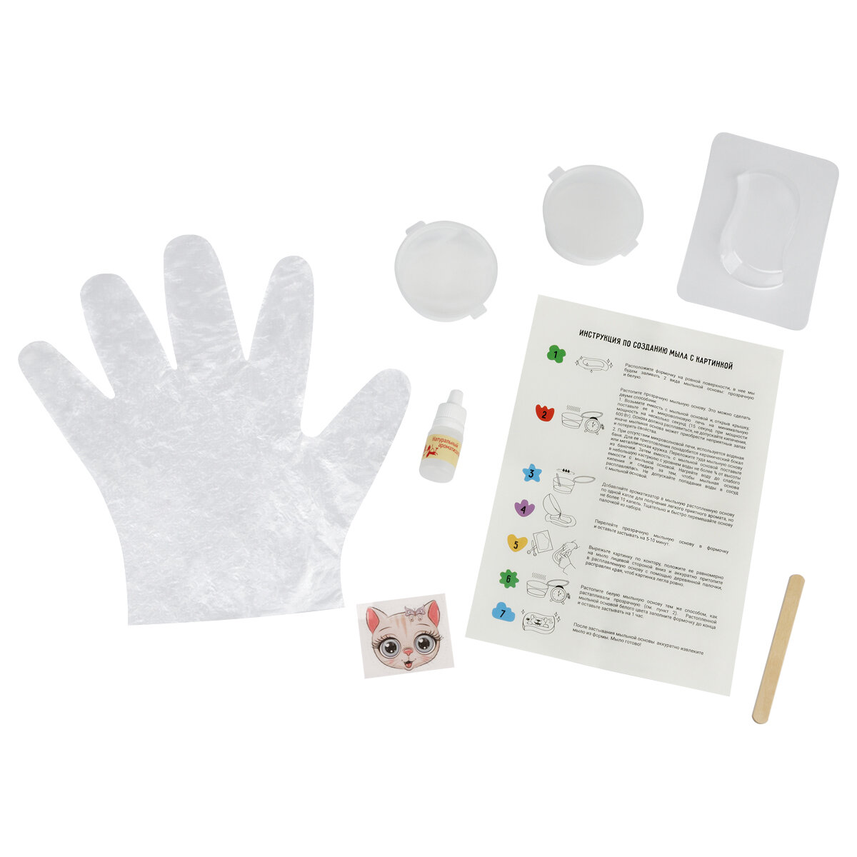 Комплект 4 шт, Набор для мыловарения ТРИ совы "Кошечка", 1 мыло с картинкой, картонная коробка
