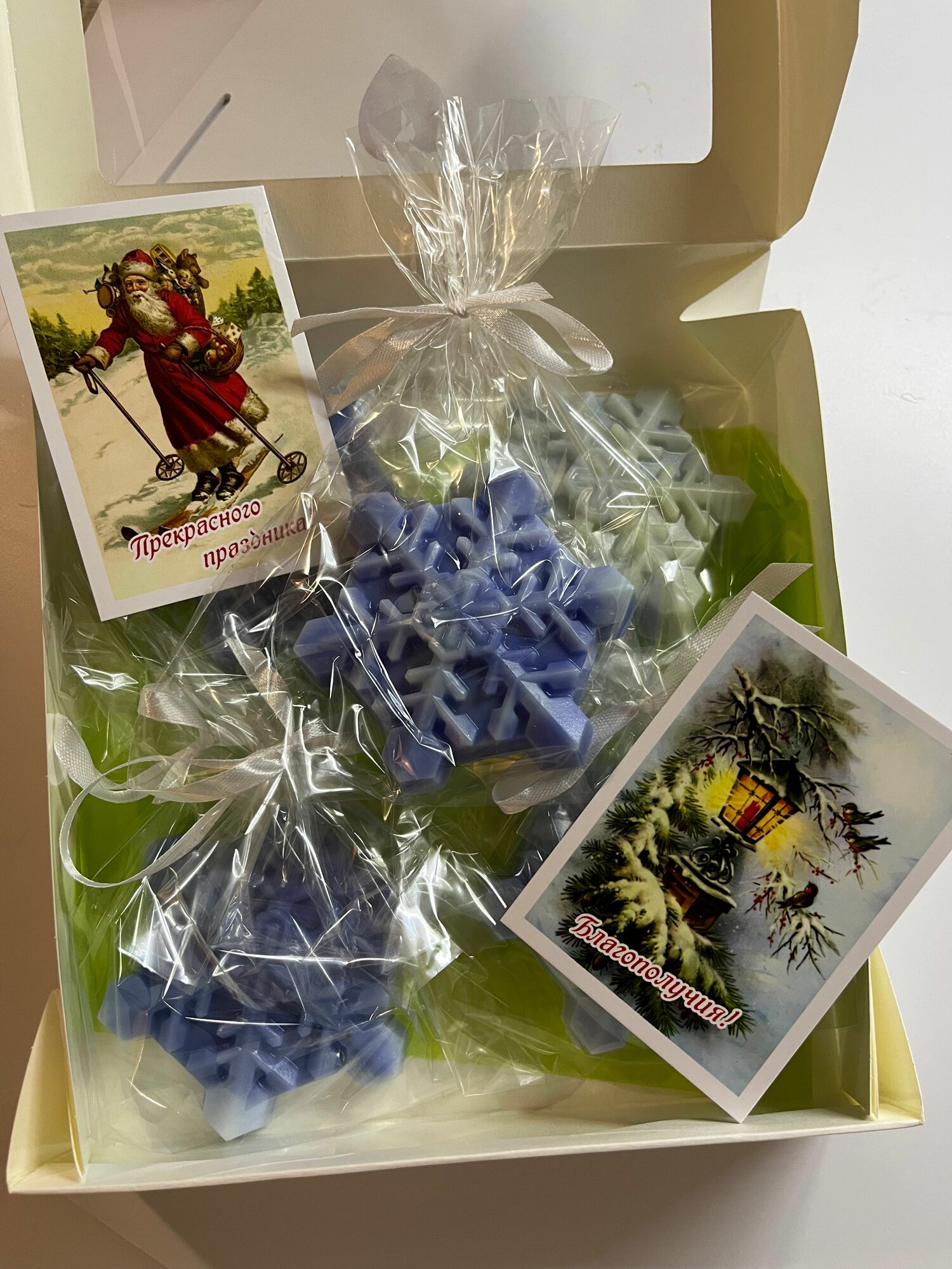 Купить Новогоднее мыло снежинки 5 шт. в коробке с открытками для детей