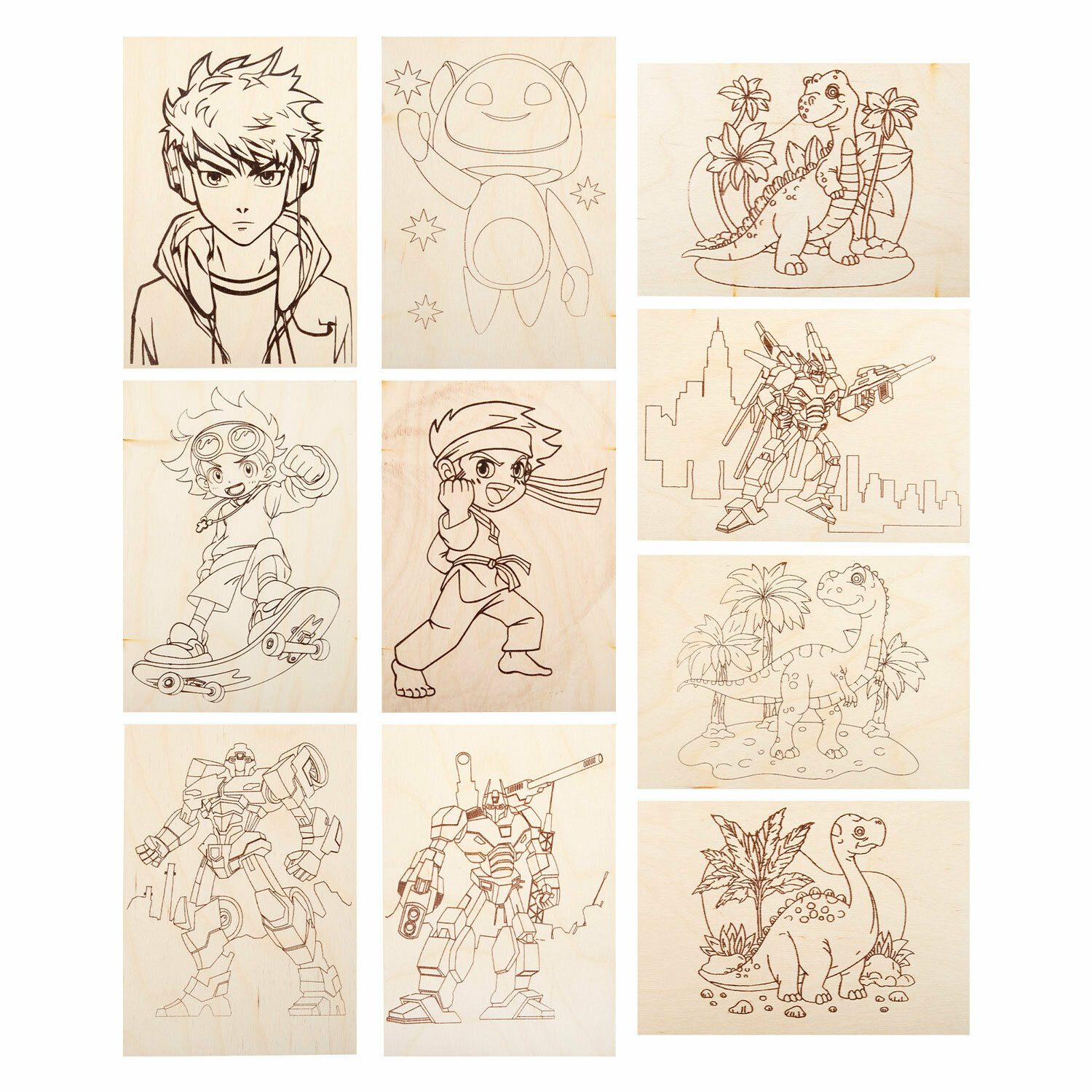 Купить Набор для выжигания по дереву, деревянные заготовки для творчества Для мальчиков, 5 штук 10 рисунков, 15x21 см, Brauberg Hobby, 665310