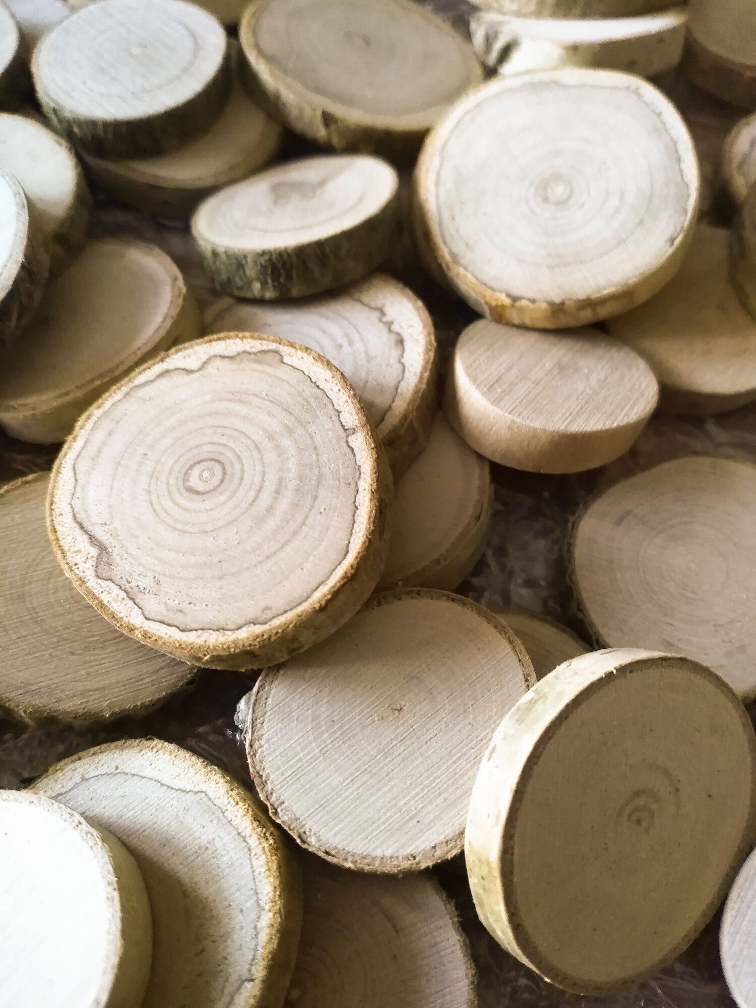 Купить Деревянные заготовки для творчества нешлифованные - 100 шт. в упаковке, диаметр 2 - 3,5 см