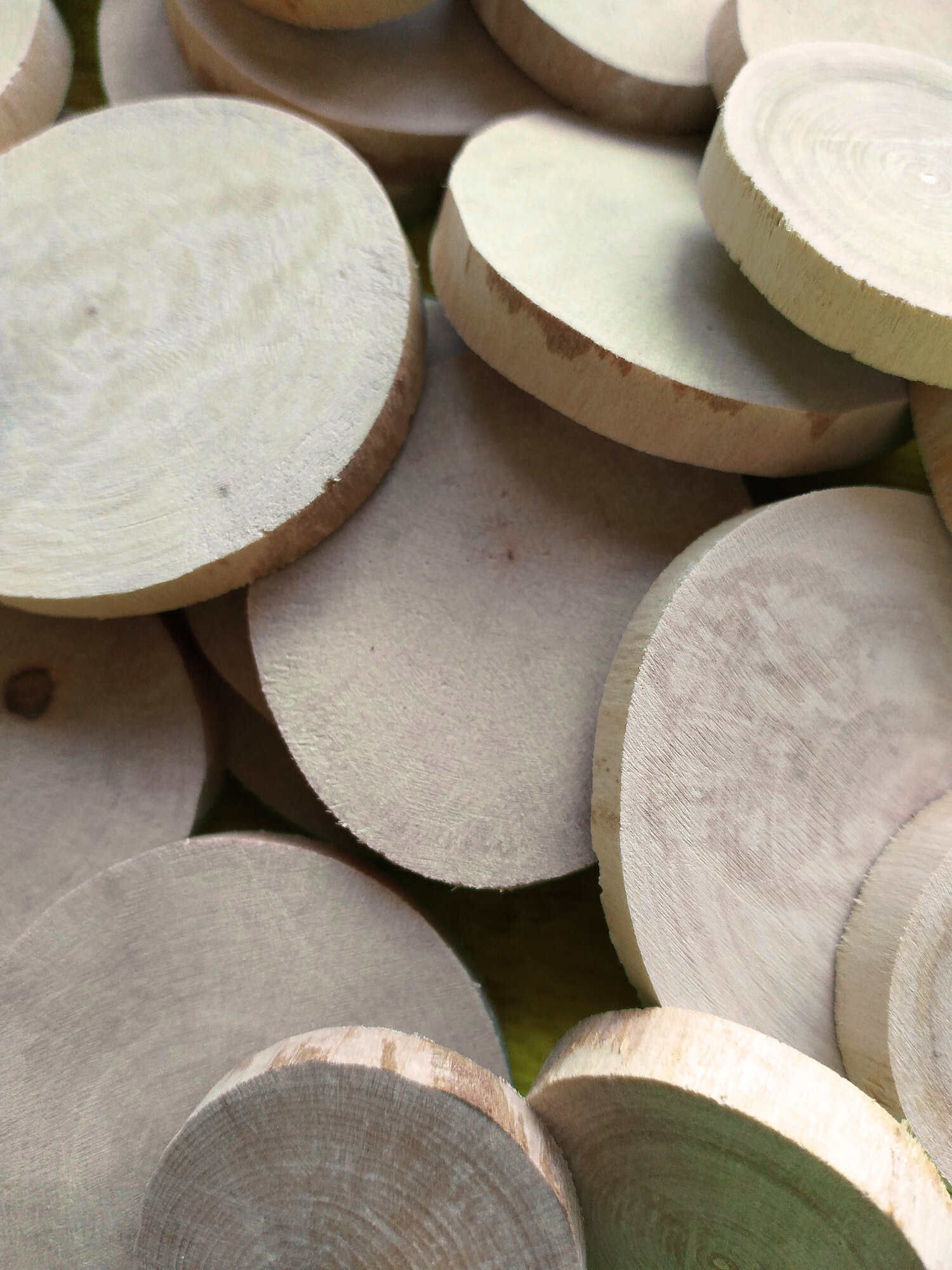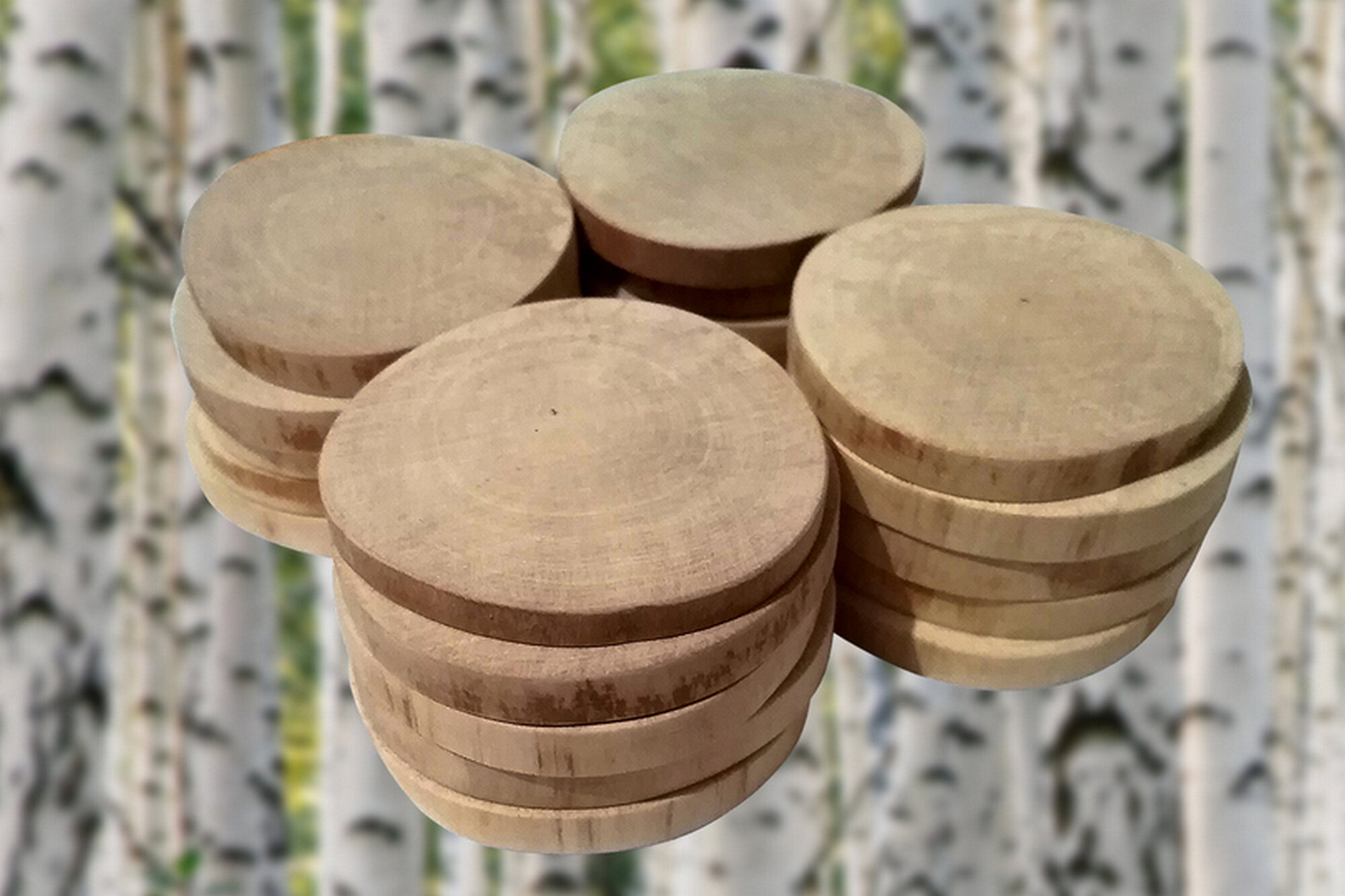 Деревянные заготовки для поделок нешлифованные - 20 шт. в упаковке, диаметр 3,5 - 5,7 см интересное: