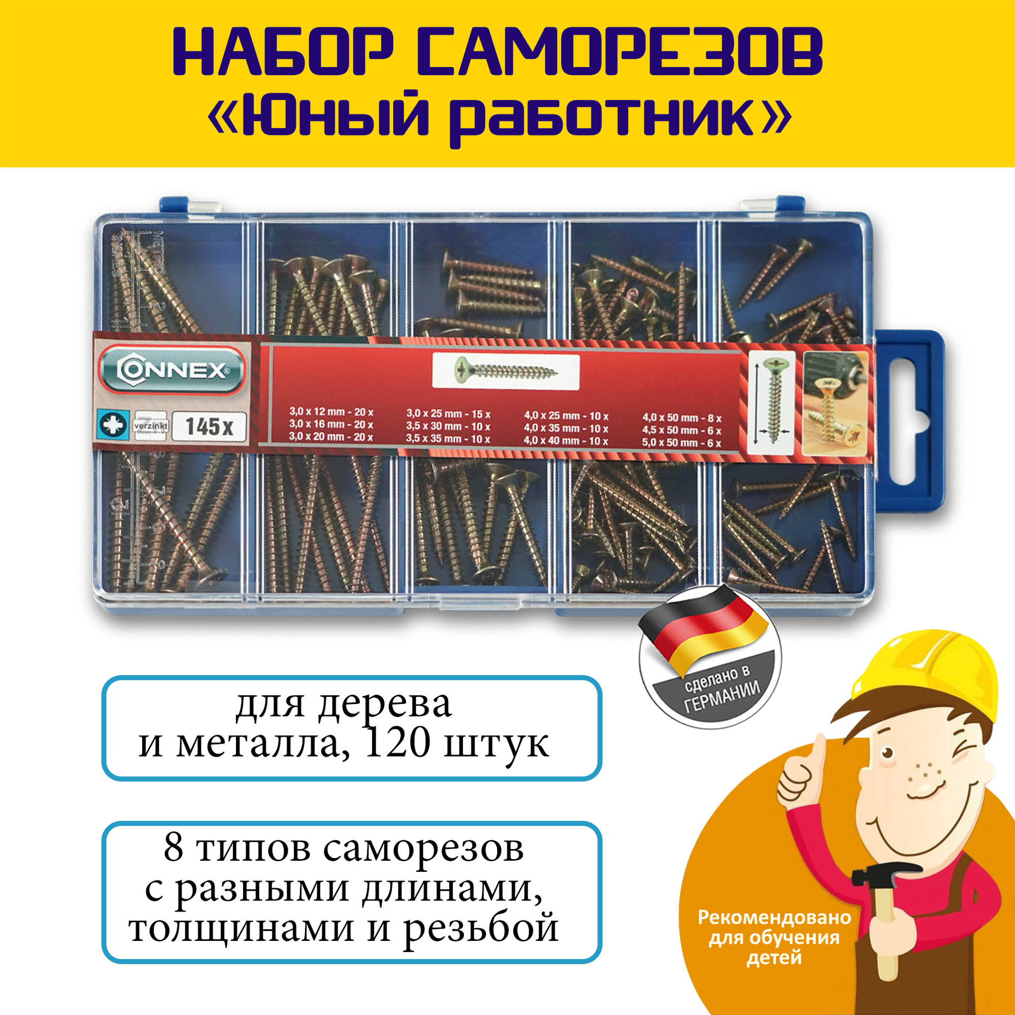 Набор саморезов для дерева и металла, 120 шт. (Юный работник) Pebaro (M947610+YW) интересное:
