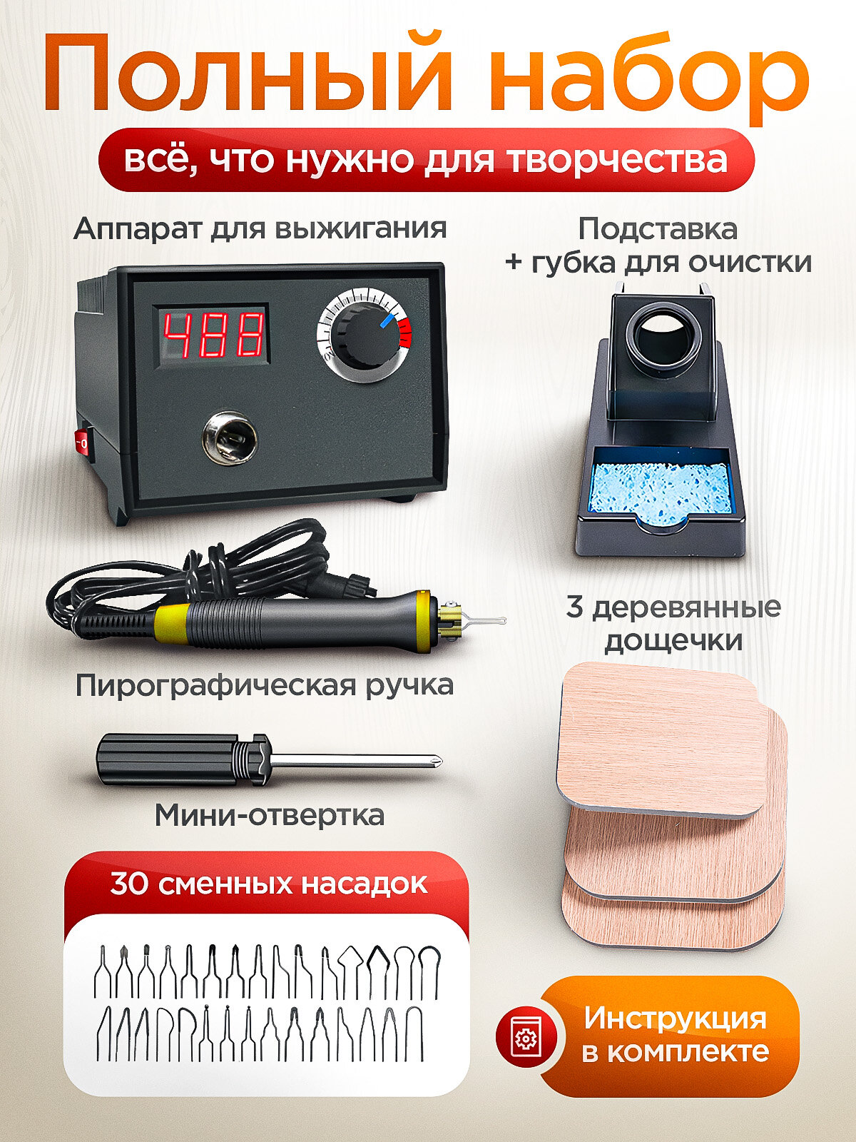 Набор для выжигания Sumsour, с насадками и деревянными дощечками интересное: