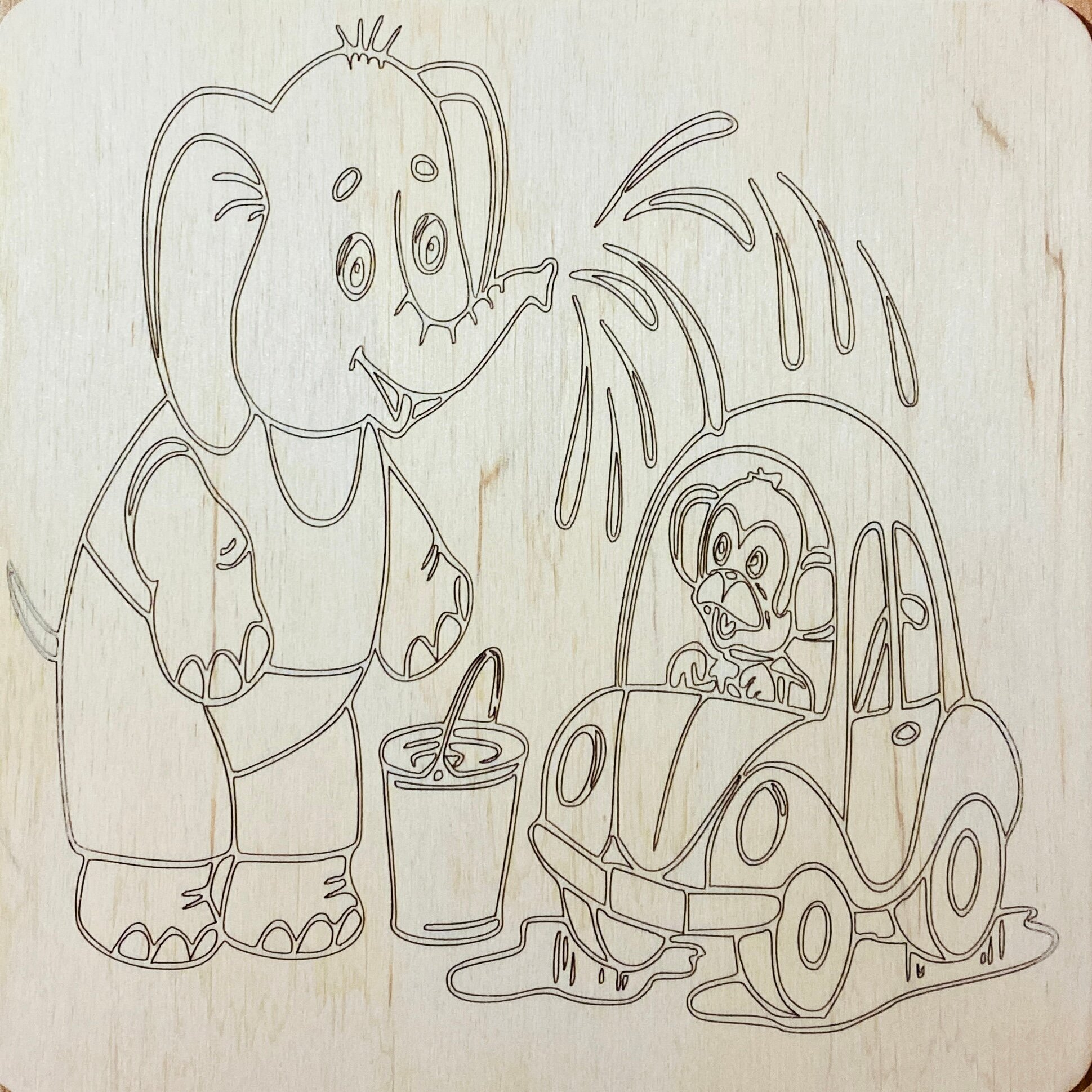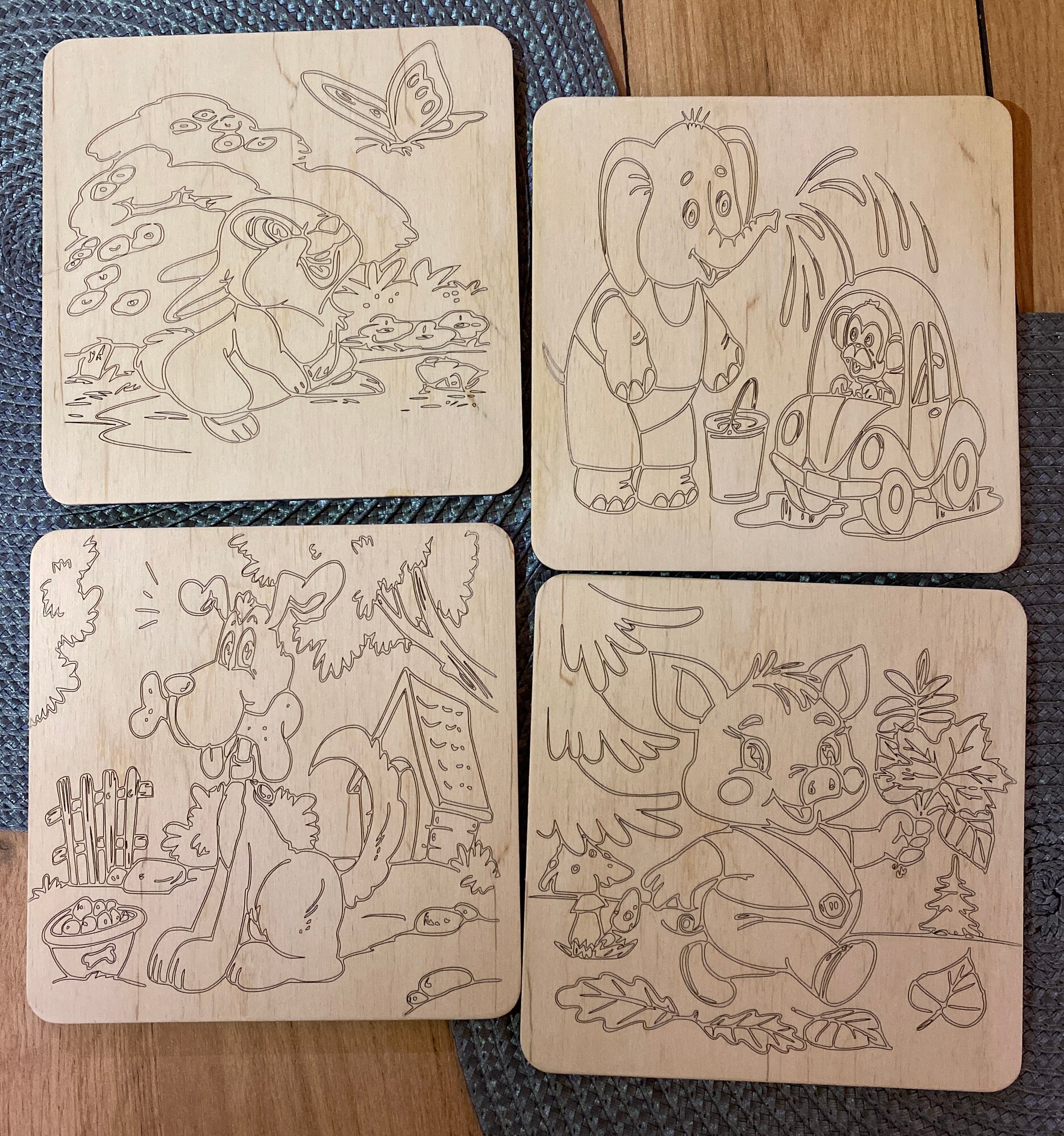 Купить Набор досок (заготовок) Зайчик, слонёнок, собачка для выжигания и рисования по дереву, размер 15*15 см