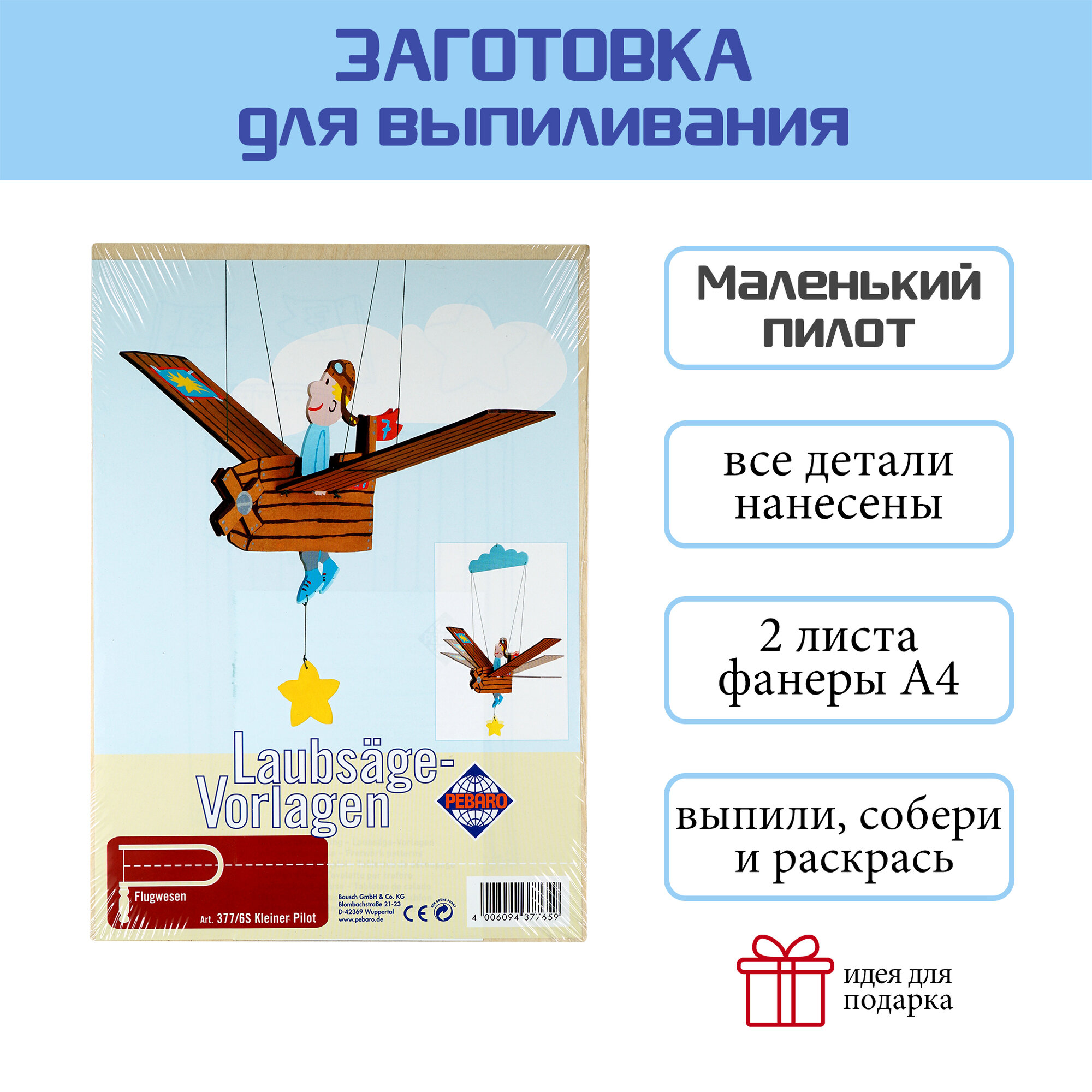 Купить Заготовка из фанеры Маленький пилот" для выпиливания лобзиком (377/6S)"