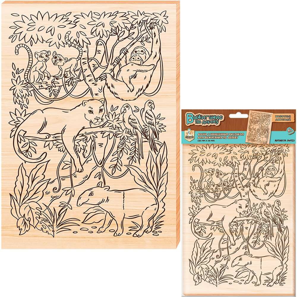 Купить Набор для творчества Выжигание. Доска для выжигания 1 шт Животные джунглей А4 04953, 3 набора