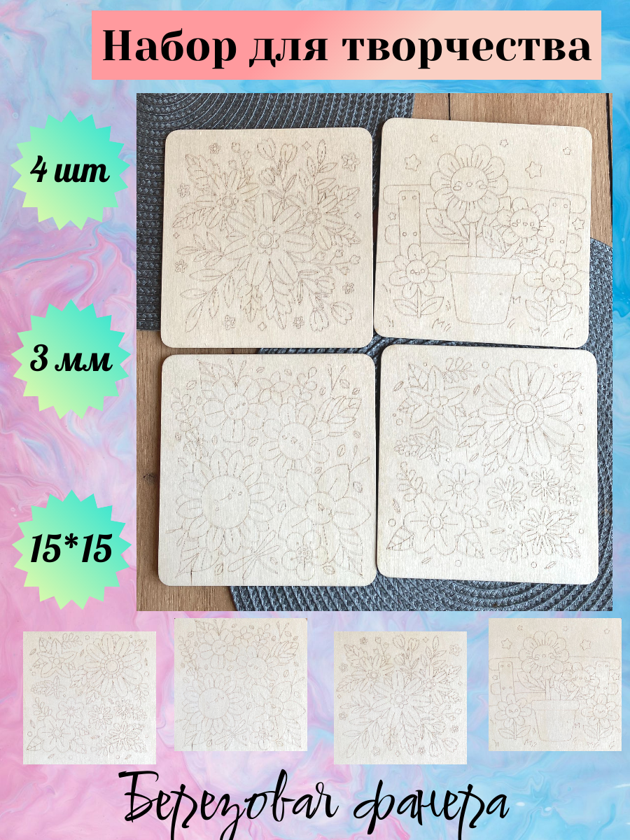 Набор досок (заготовок) для выжигания и рисования по дереву "Весенние цветы", размер 15*15 см интересное:
