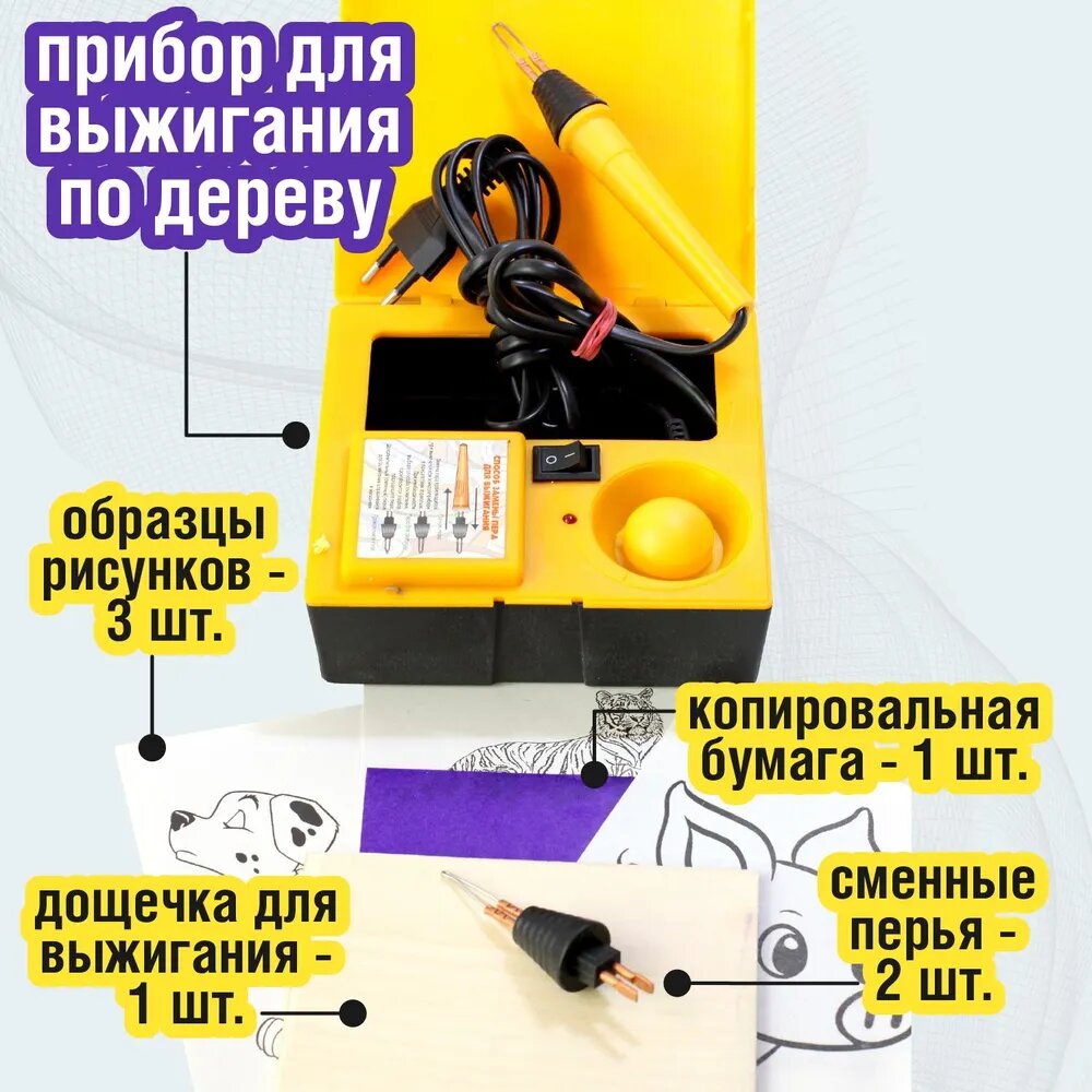 Набор для выжигания по дереву Феникс "Дымок", 20Вт, 2 насадки, 8 предметов интересное: