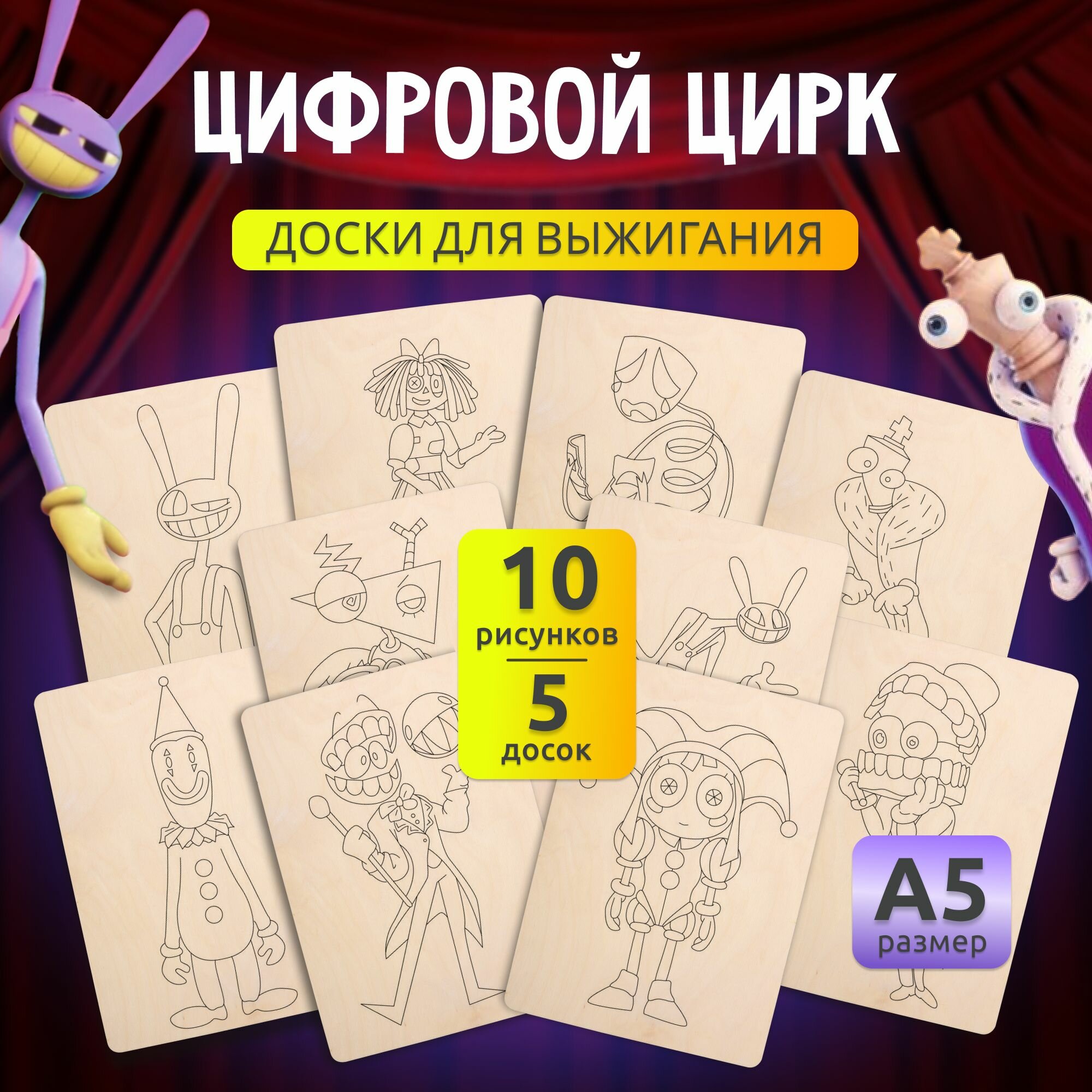 Набор деревянных досок А5 для выжигания по дереву MEGA TOYS детский из фанеры с рисунком Цифровой цирк интересное: